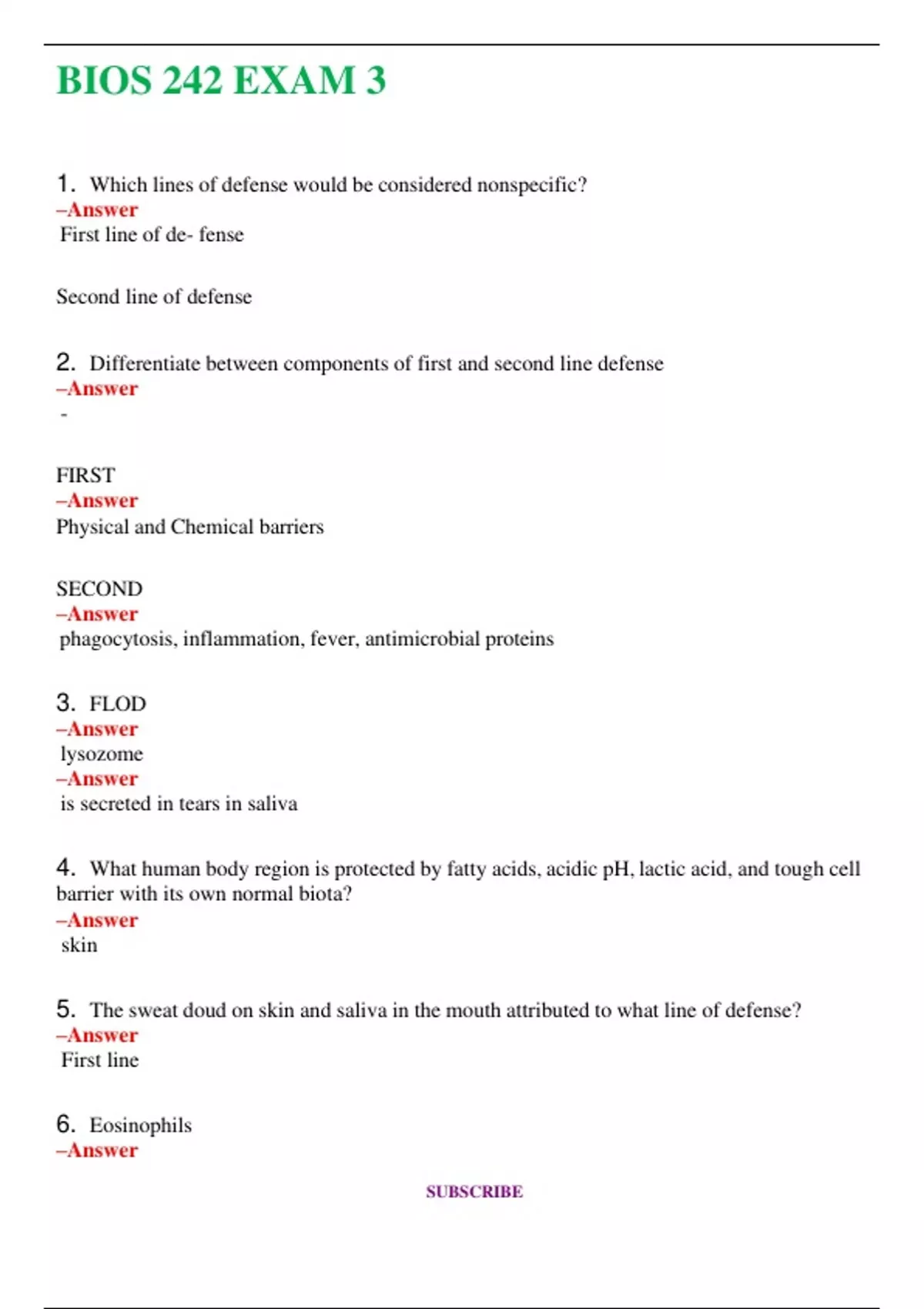 BIOS 242 EXAM 3 (Latest 2024 / 2025) Questions and Answers (Verified Answers)