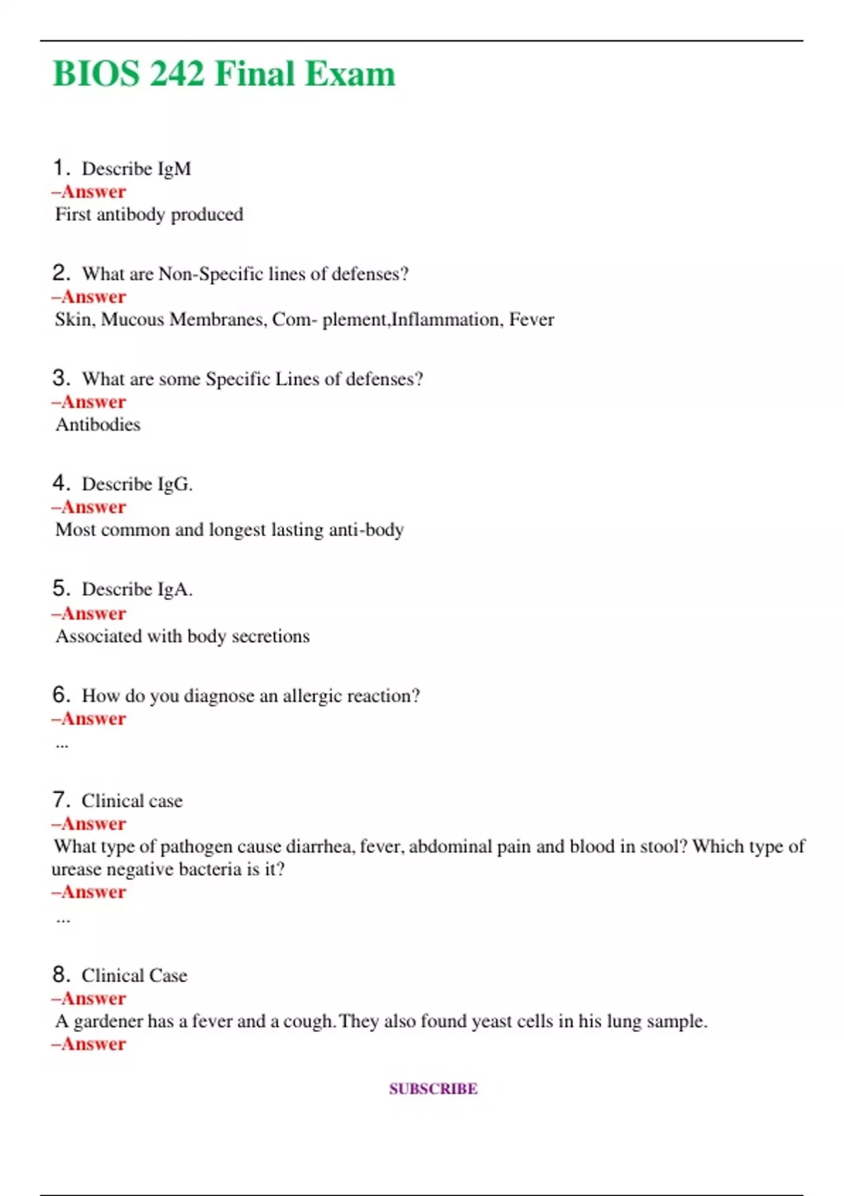 BIOS 242 Final Exam (Latest 2024 / 2025) Questions and Answers (Verified Answers)
