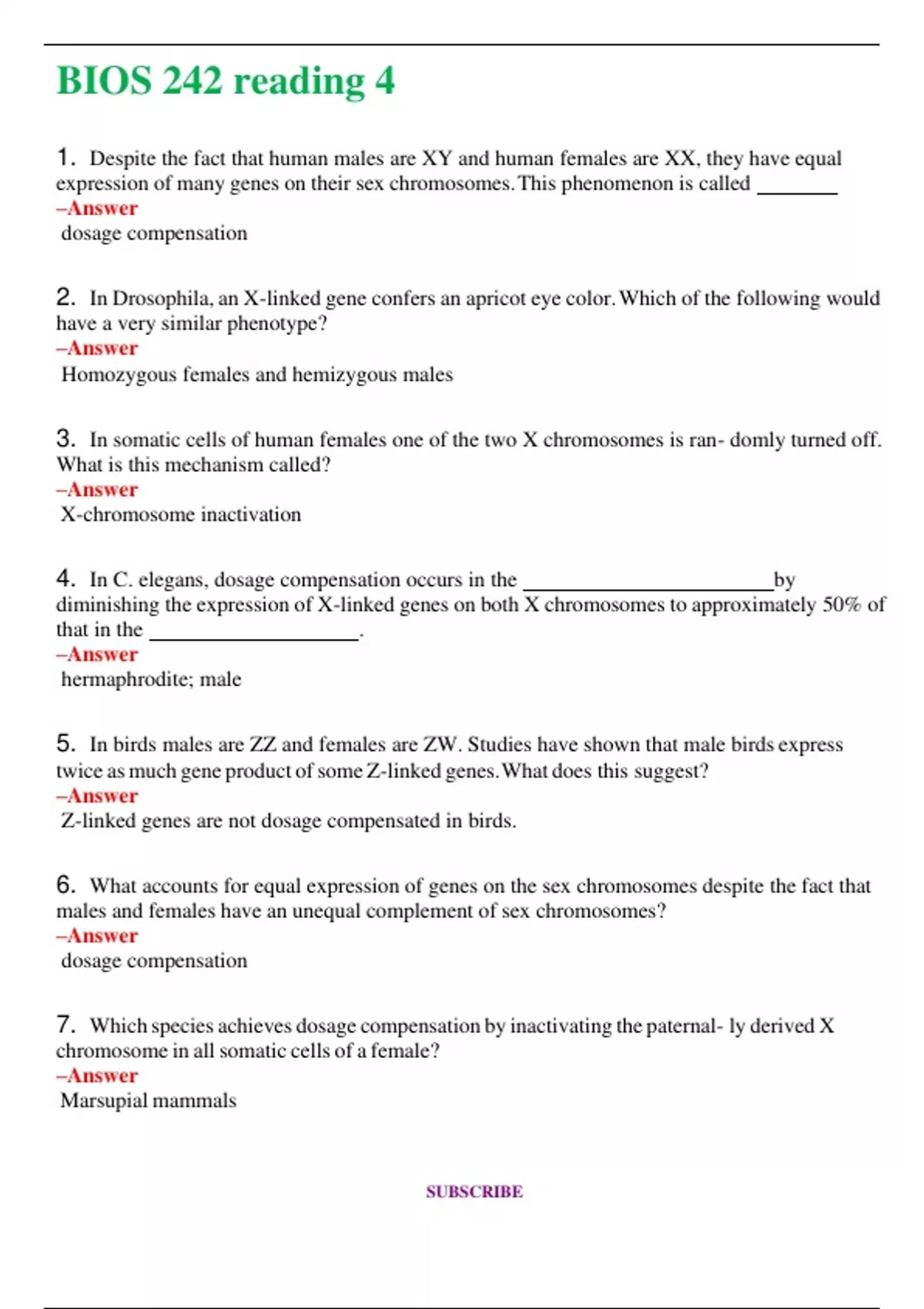 BIOS 242 Reading 4 (Latest 2024 / 2025) Questions and Answers (Verified Answers)