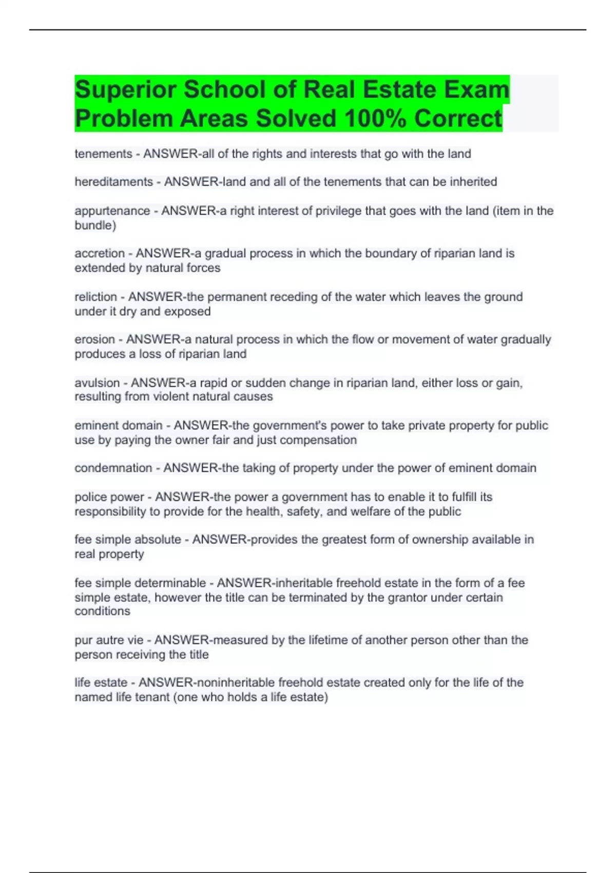 Superior School of Real Estate Exam Problem Areas Solved 100% Correct