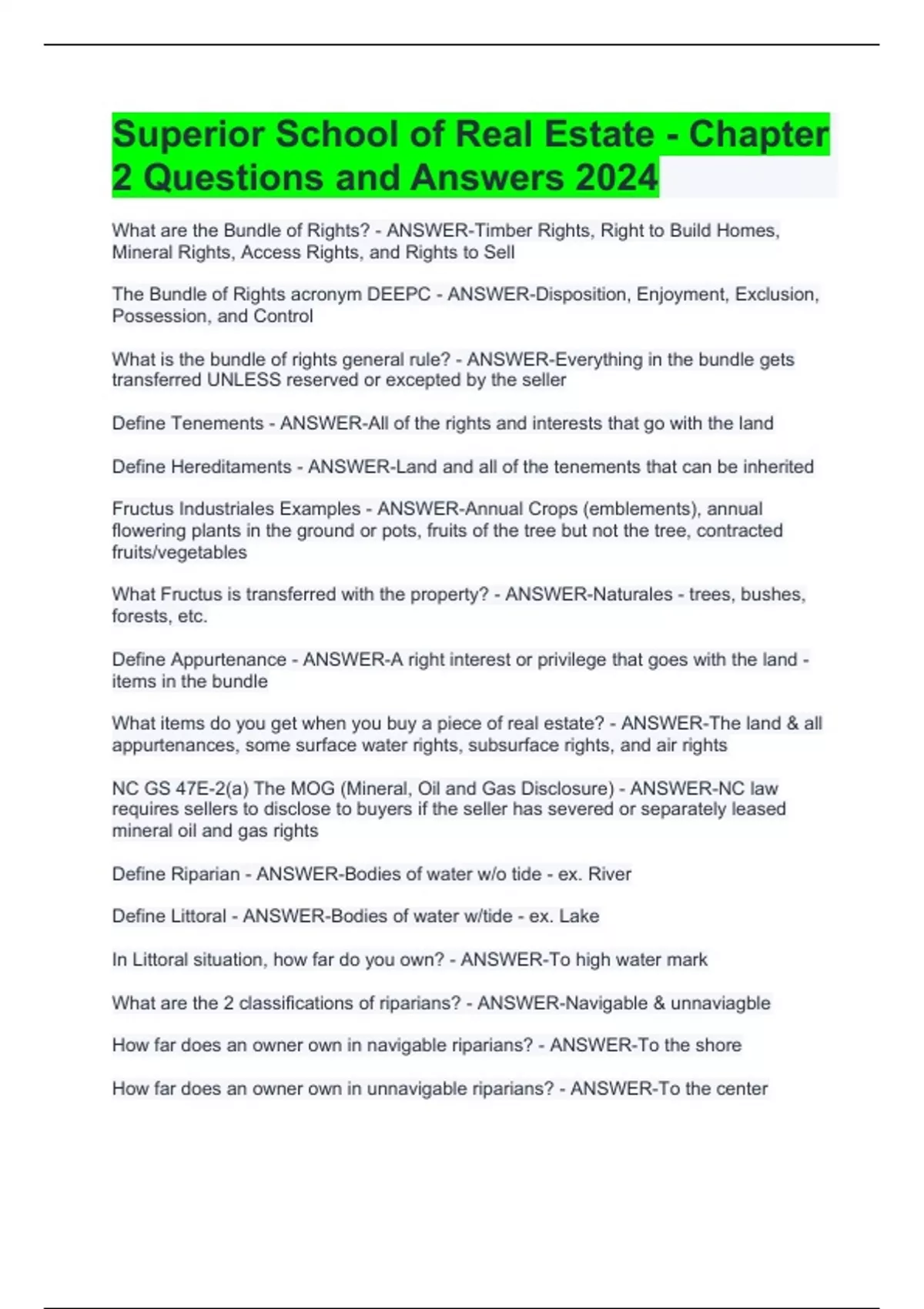 Superior School of Real Estate - Chapter 2 Questions and Answers 2024