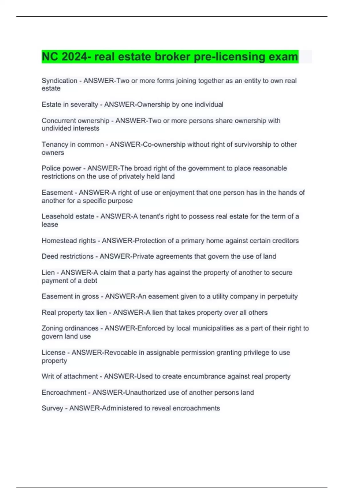 NC Superior Real Estate/NC 75-HOUR BROKER PRE-LICENSING COURSE Exams Package Deal -Solved