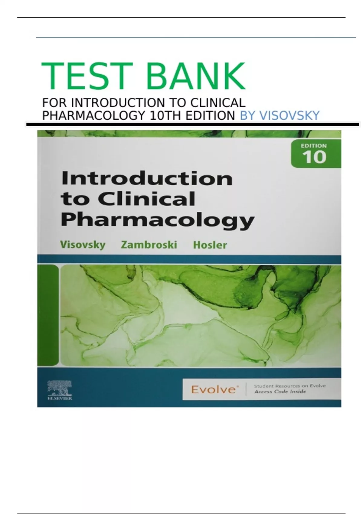 Test Bank - Introduction to Clinical Pharmacology, 10th Edition (Visovsky, 2022), Chapter 1-20 | All Chapters