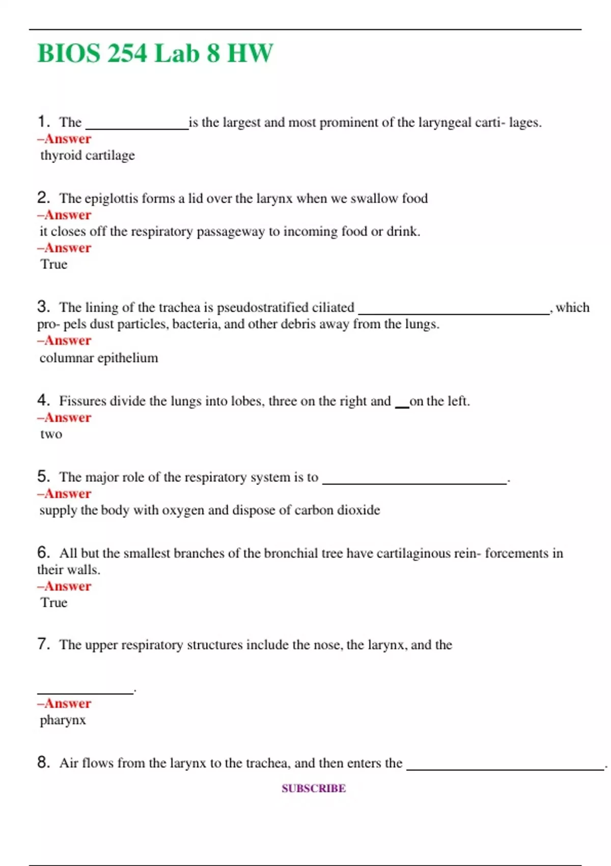 BIOS 254 Lab 8 HW (Latest 2024 / 2025) Questions and Answers (Verified Answers)