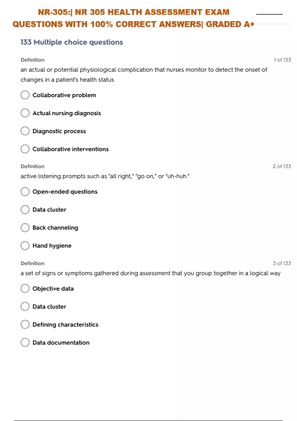 NR-305:| NR 305 HEALTH ASSESSMENT EXAM QUESTIONS WITH 100% CORRECT ANSWERS| GRADED A+