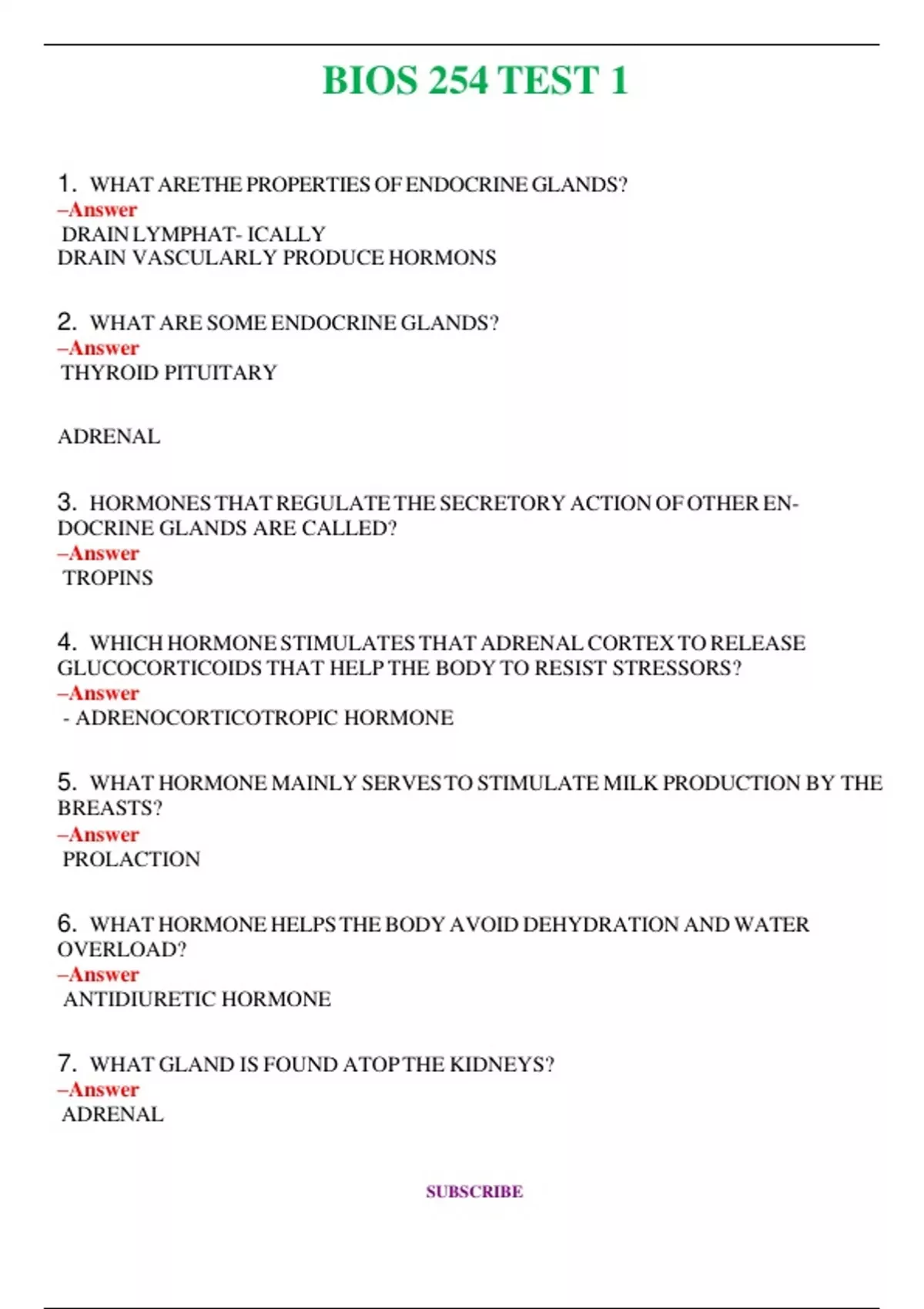 BIOS 254 Exams Set (Latest 2024 / 2025) Questions and Answers (Verified Answers)