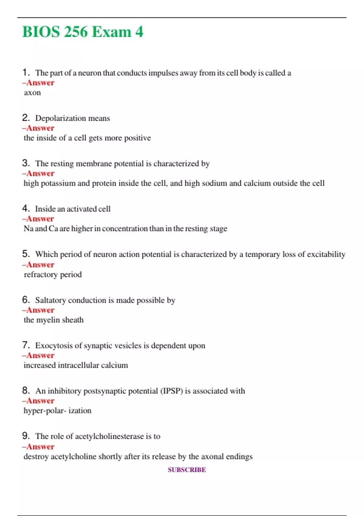 BIOS 256 Exam 4(Latest 2024 / 2025) Questions and Answers (Verified Answers)