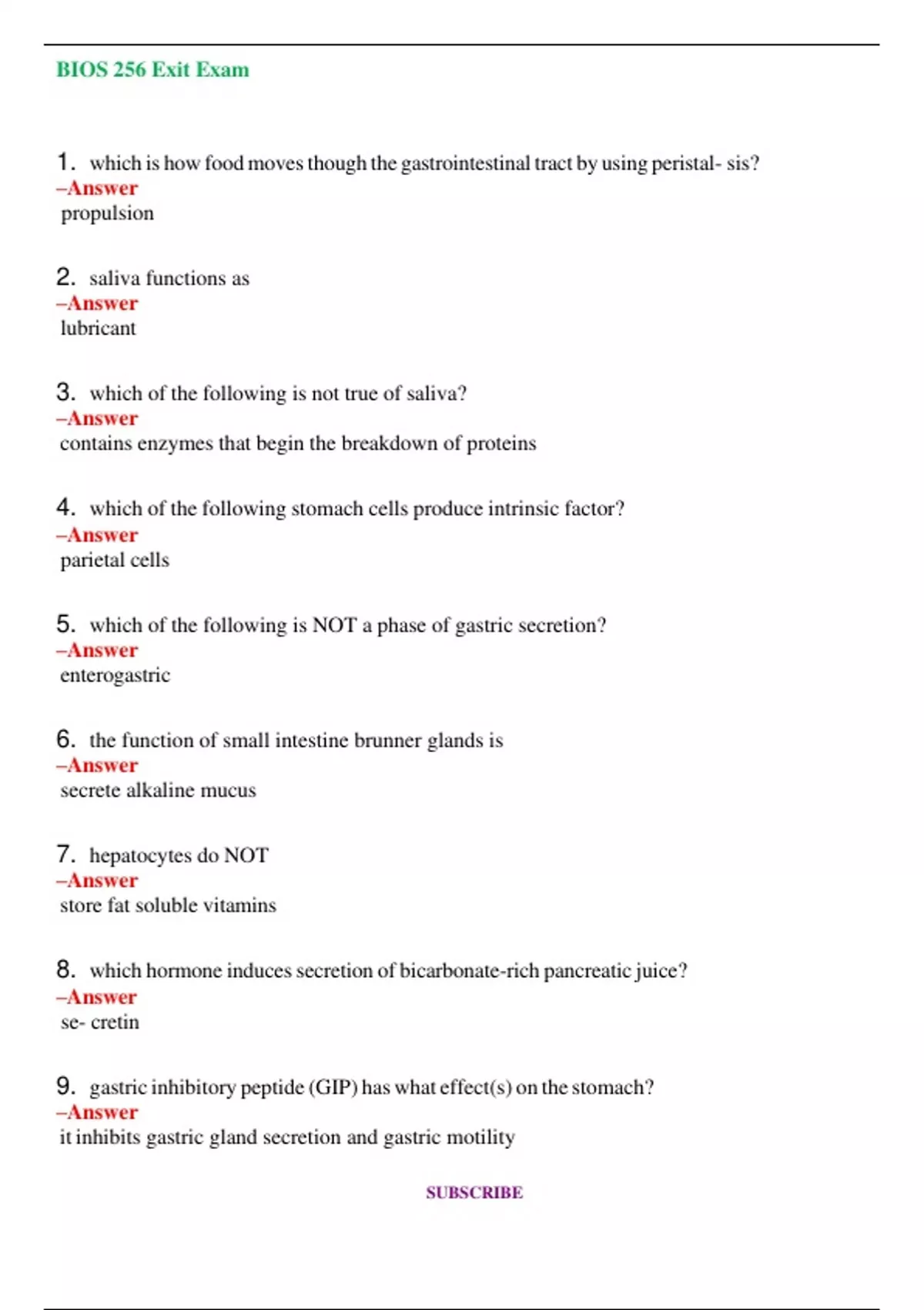 BIOS 256 Exit Exam (Latest 2024 / 2025) Questions and Answers (Verified Answers)
