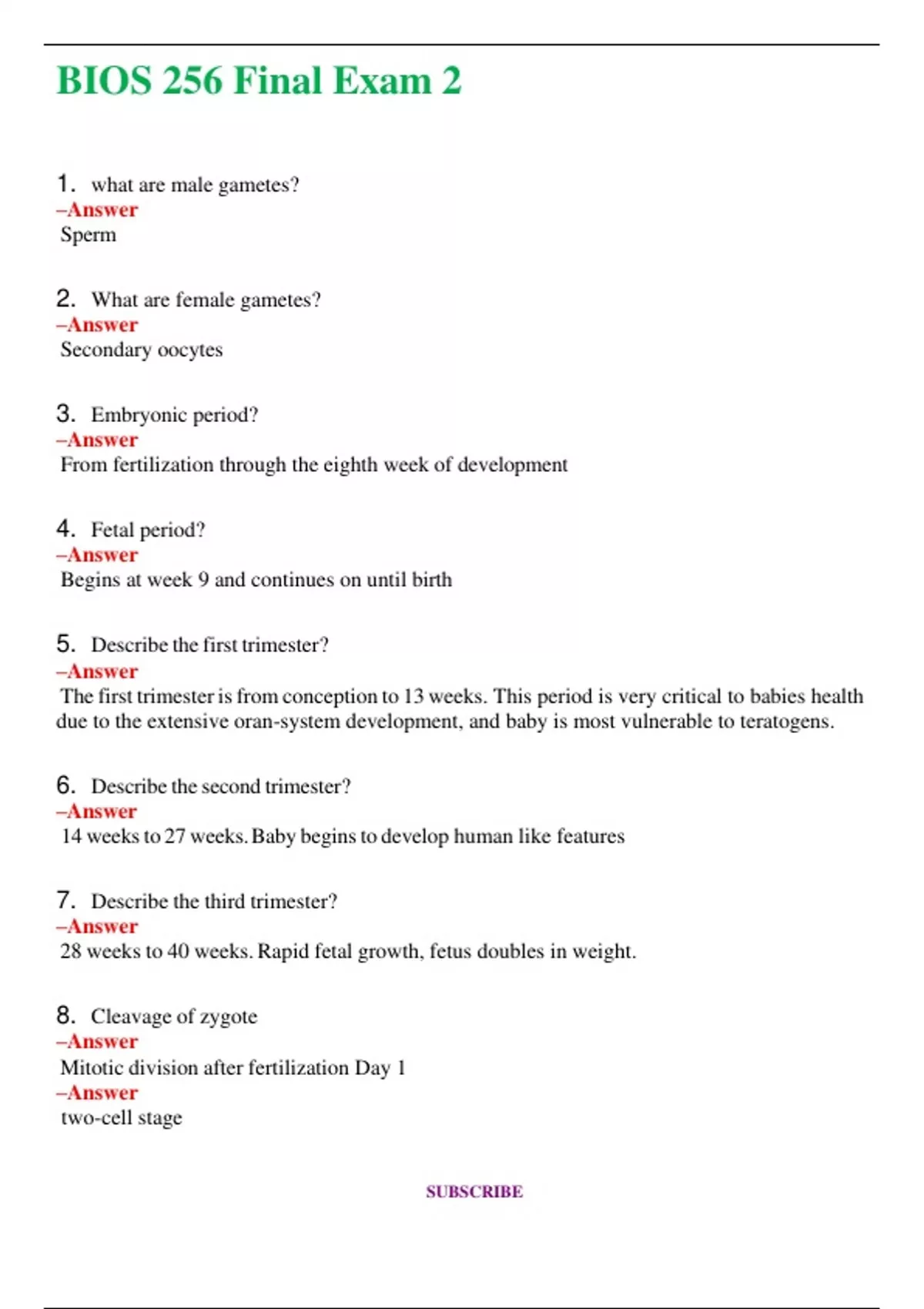 BIOS 256 Final Exam 2 (Latest 2024 / 2025) Questions and Answers (Verified Answers)