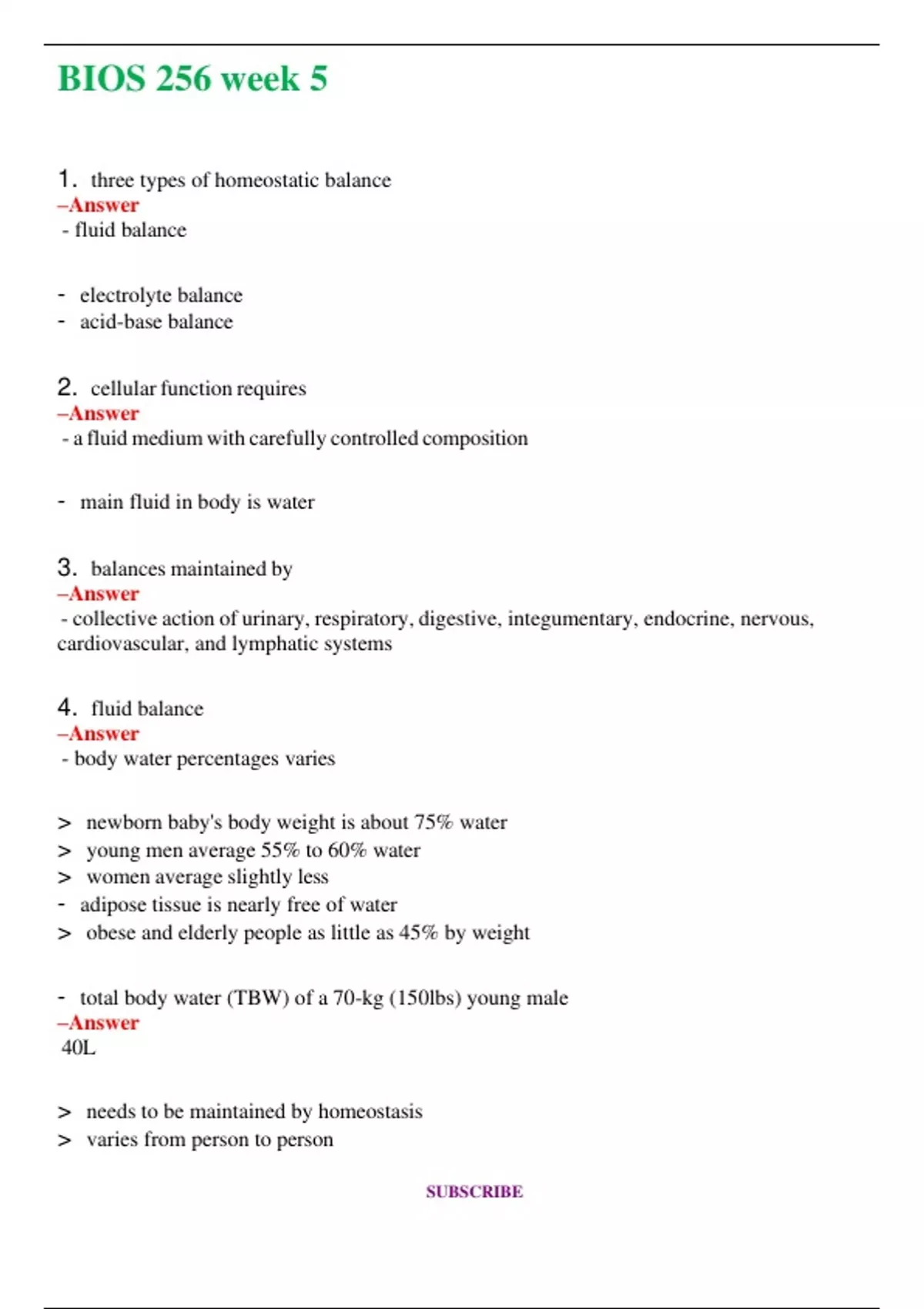 BIOS 256 Week 5 (Latest 2024 / 2025) Questions and Answers (Verified Answers)