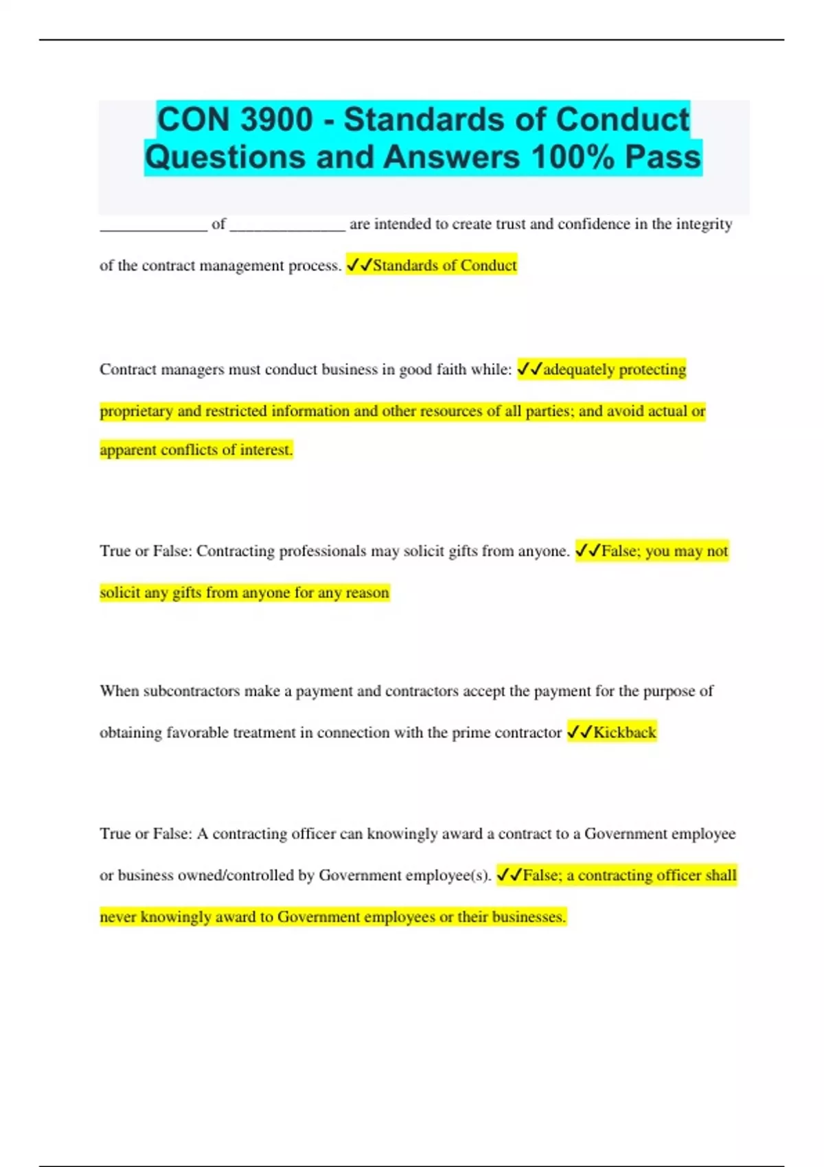 CON 3900 - Standards of Conduct Questions and Answers 100% Pass