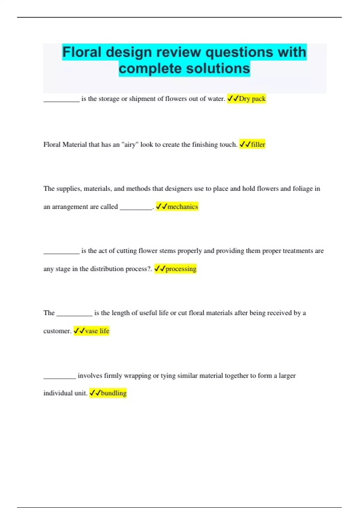 Floral design review questions with complete solutions