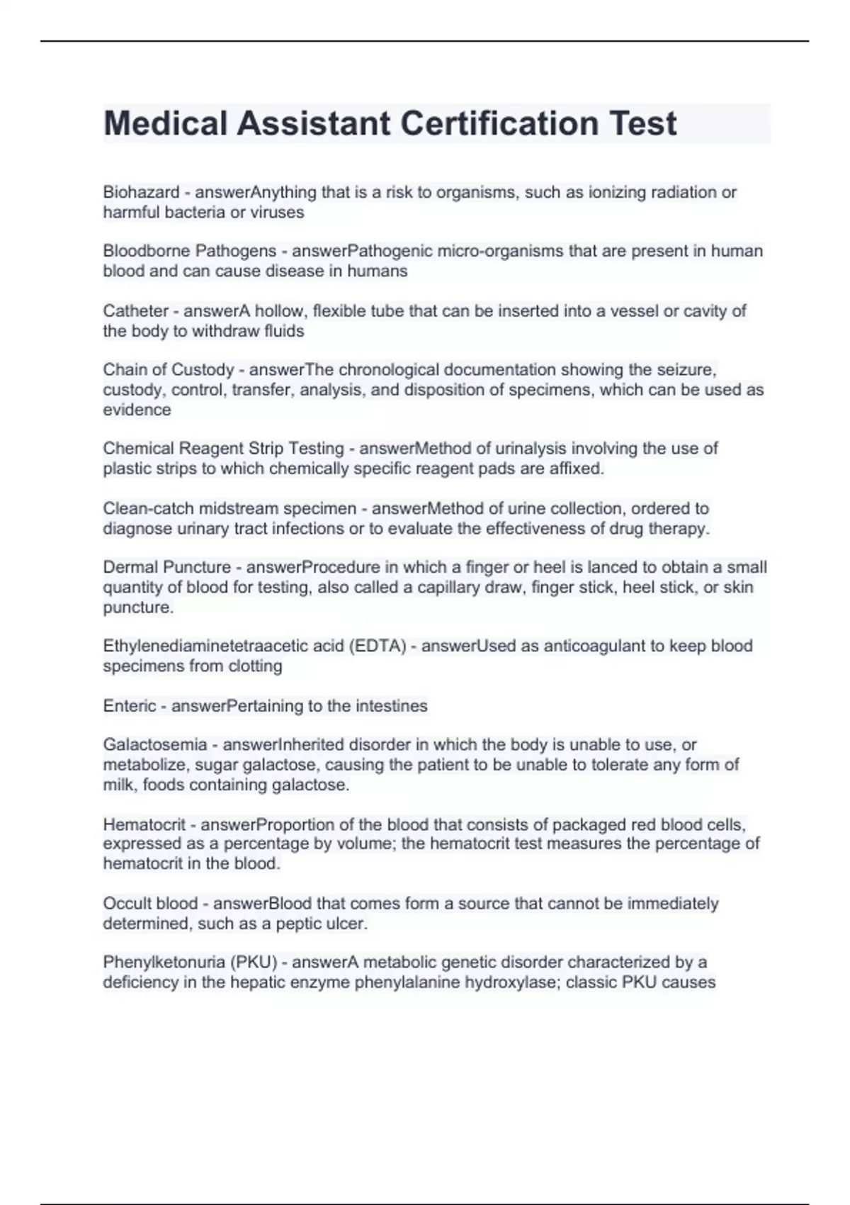 Medical Assistant Certification Test.