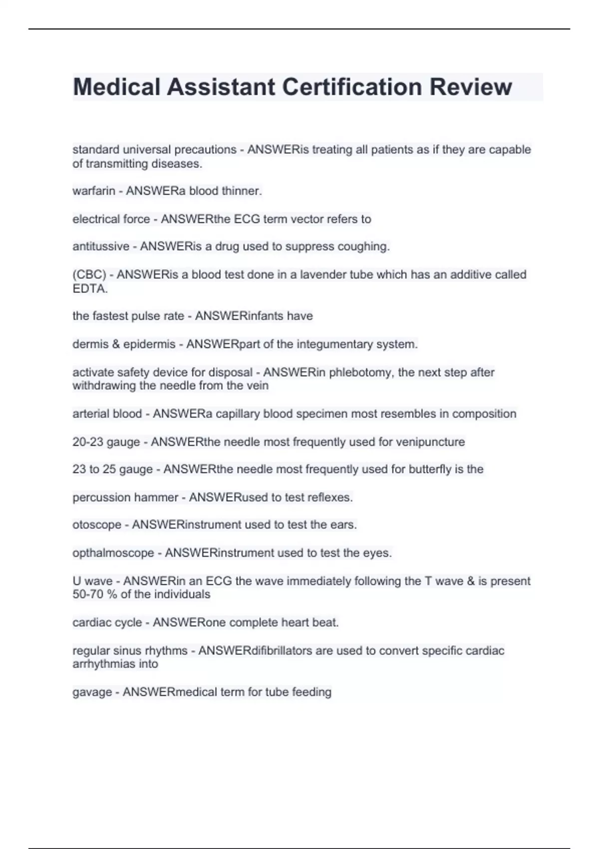 Medical Assistant Certification Review.Actual questions with strong answers