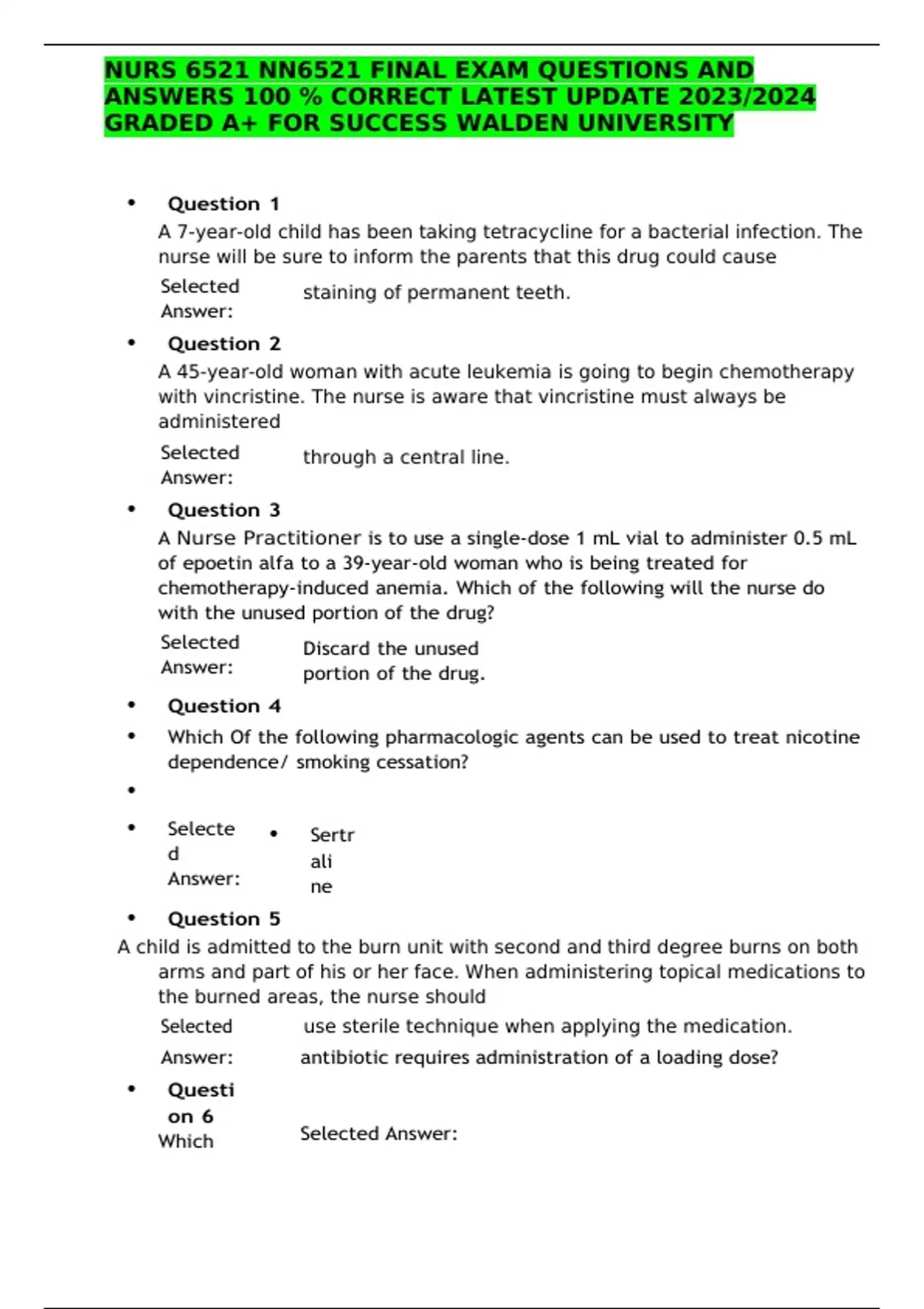 NURS 6521 NN6521 FINAL EXAM QUESTIONS AND ANSWERS 100 % CORRECT LATEST UPDATE 2023/2024 GRADED A+ FOR SUCCESS WALDEN UNIVERSITY