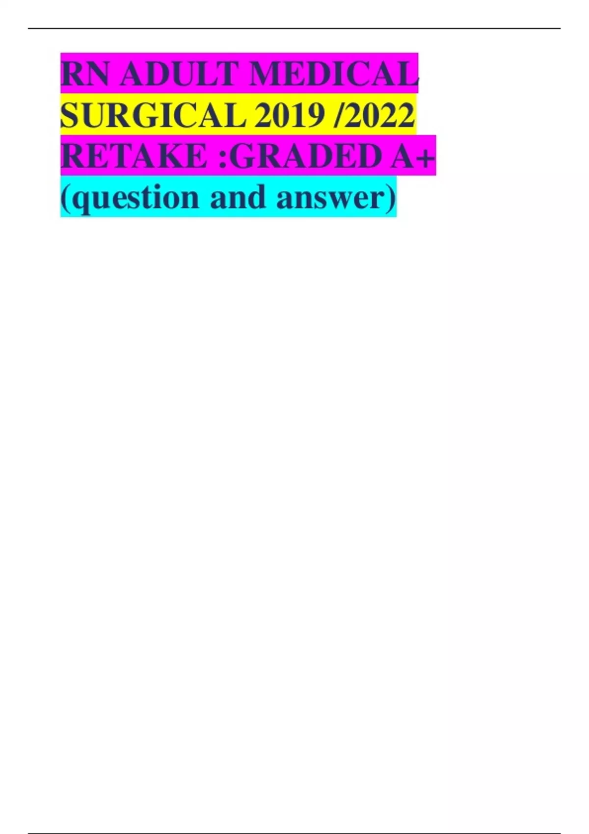 RN ADULT MEDICAL SURGICAL 2019 /2022 RETAKE :GRADED A+ (question and answer)