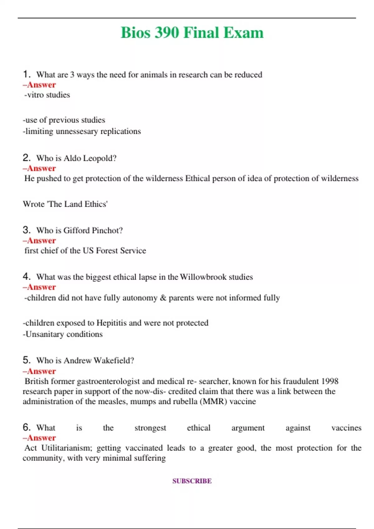 BIOS 390 Final Exam (Latest 2024 / 2025) Questions and Answers (Verified Answers)