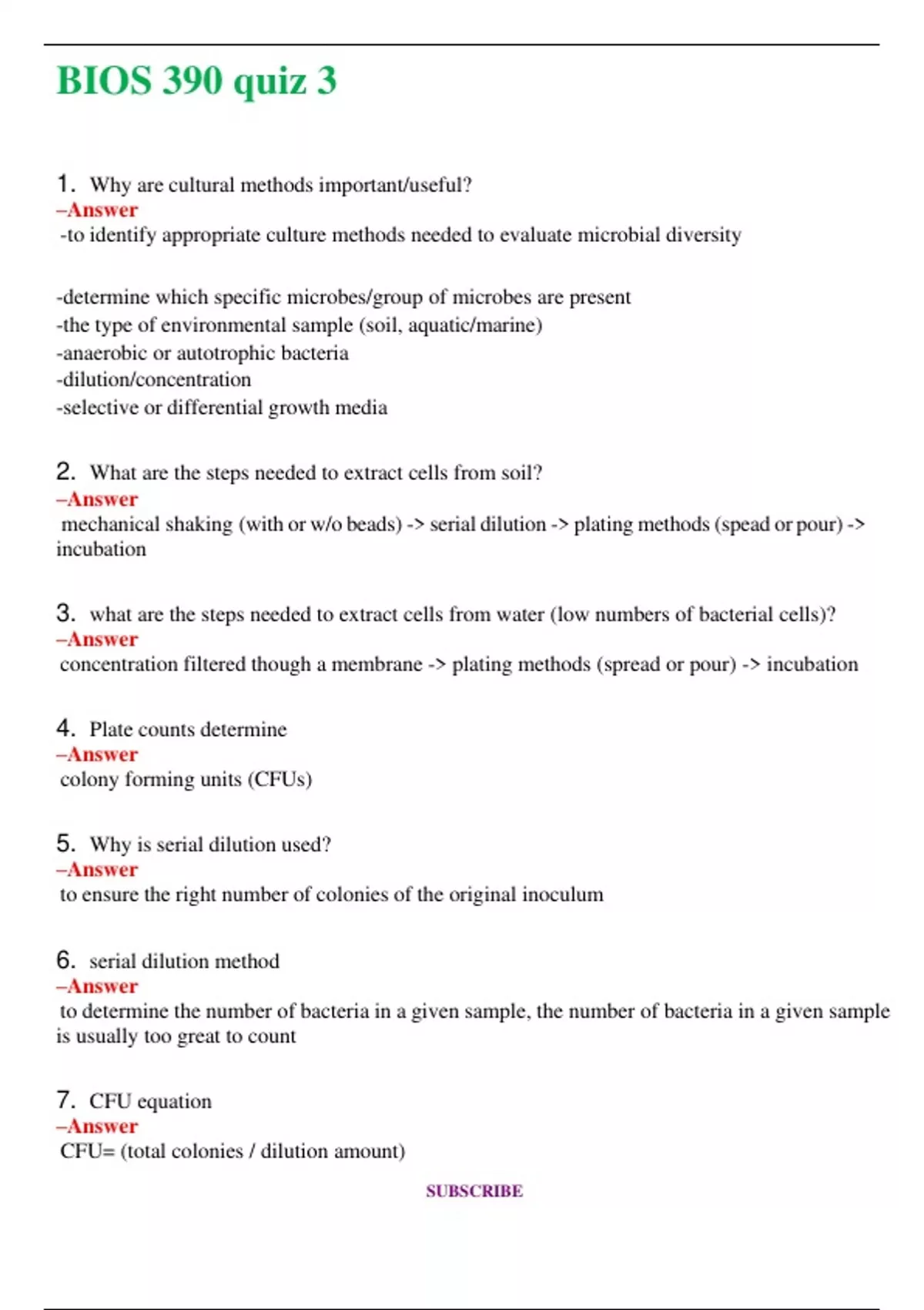 BIOS 390 Quiz 3 (Latest 2024 / 2025) Questions and Answers (Verified Answers)