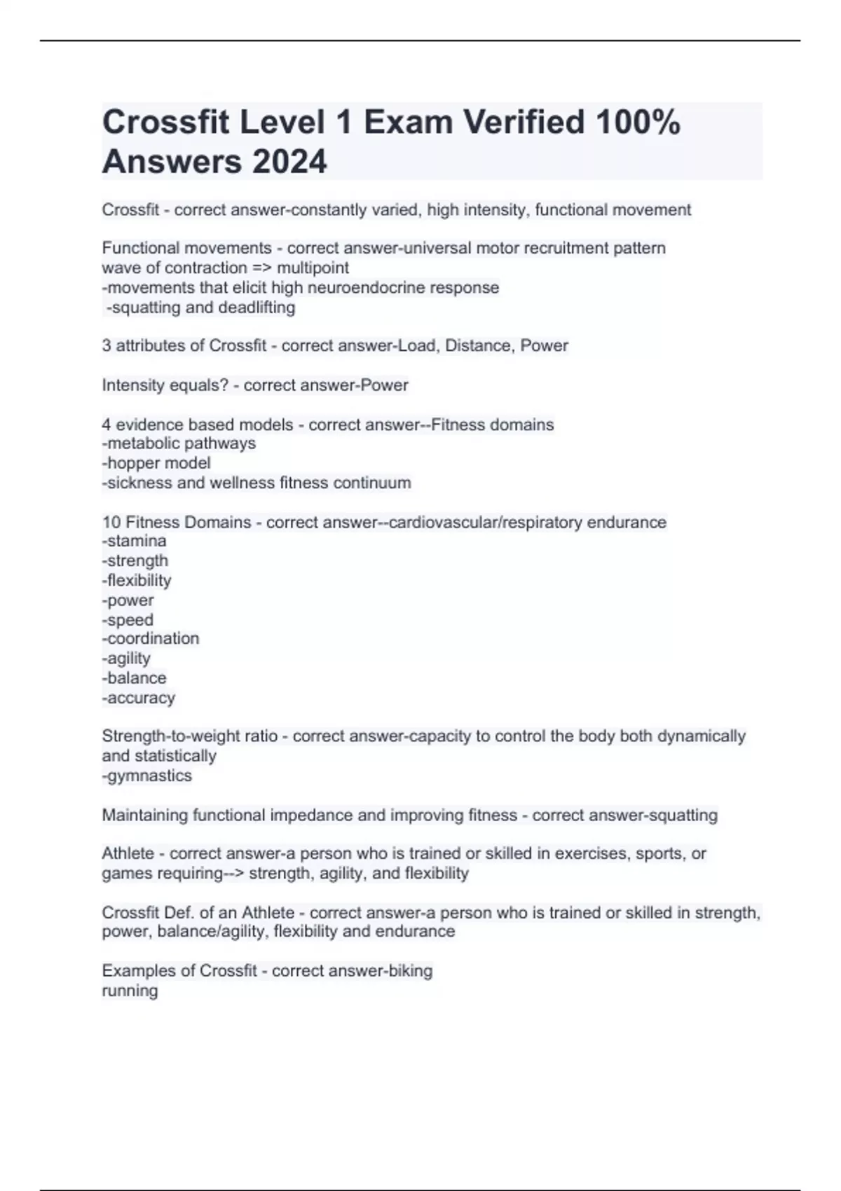 Crossfit Level 1 Exam Verified 100% Answers 2024