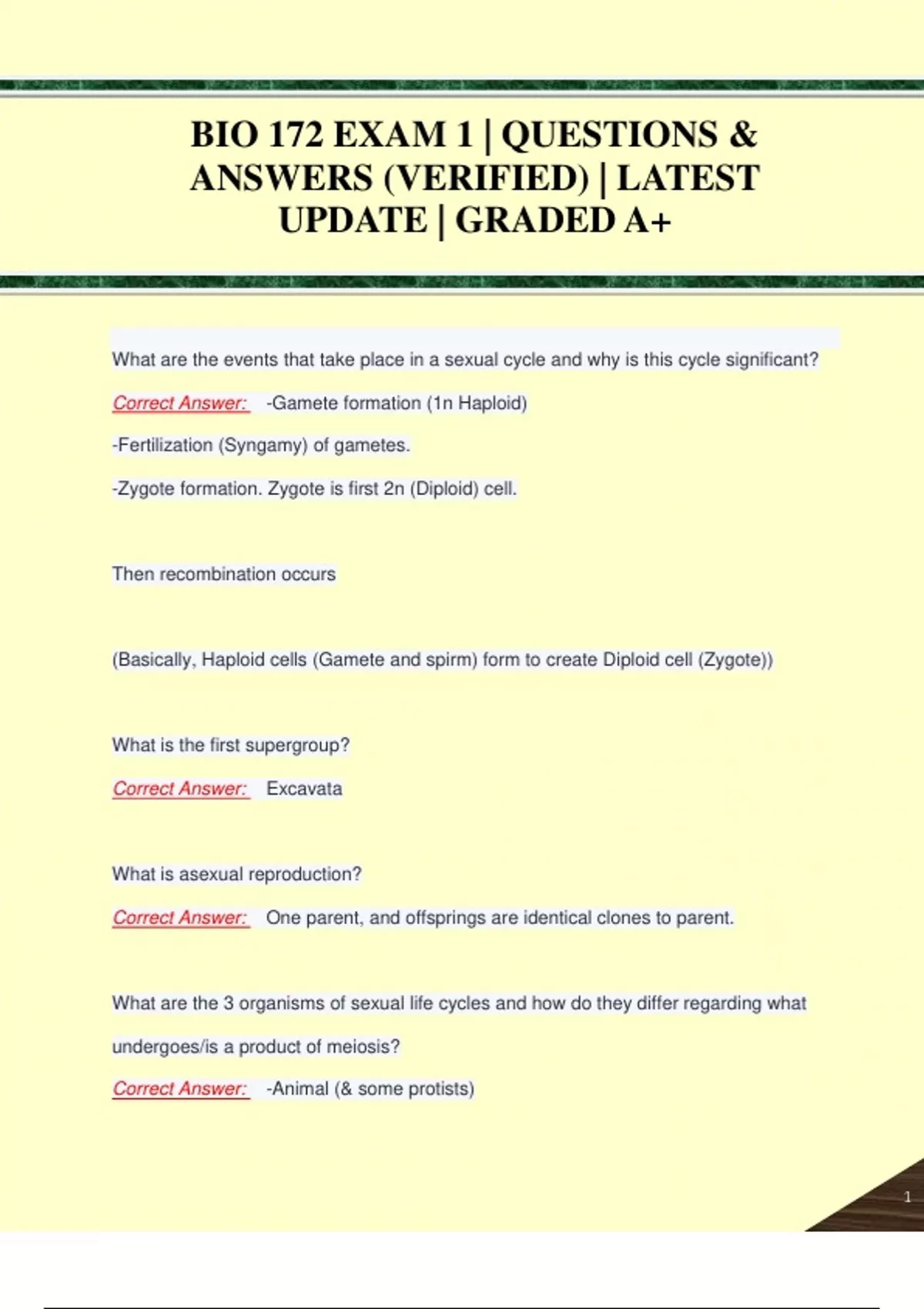 BIO 172 EXAM 1 | QUESTIONS & ANSWERS (VERIFIED) | LATEST UPDATE | GRADED A+BIO 172 EXAM 1 | QUESTIONS & ANSWERS (VERIFIED) | LATEST UPDATE | GRADED A+
