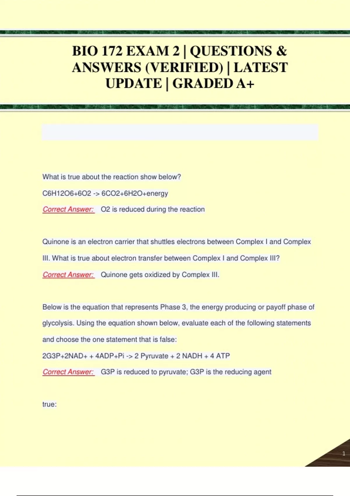 BIO 172 EXAM 2 | QUESTIONS & ANSWERS (VERIFIED) | LATEST UPDATE | GRADED A+ BIO 172 EXAM 2 | QUESTIONS & ANSWERS (VERIFIED) | LATEST UPDATE | GRADED A+