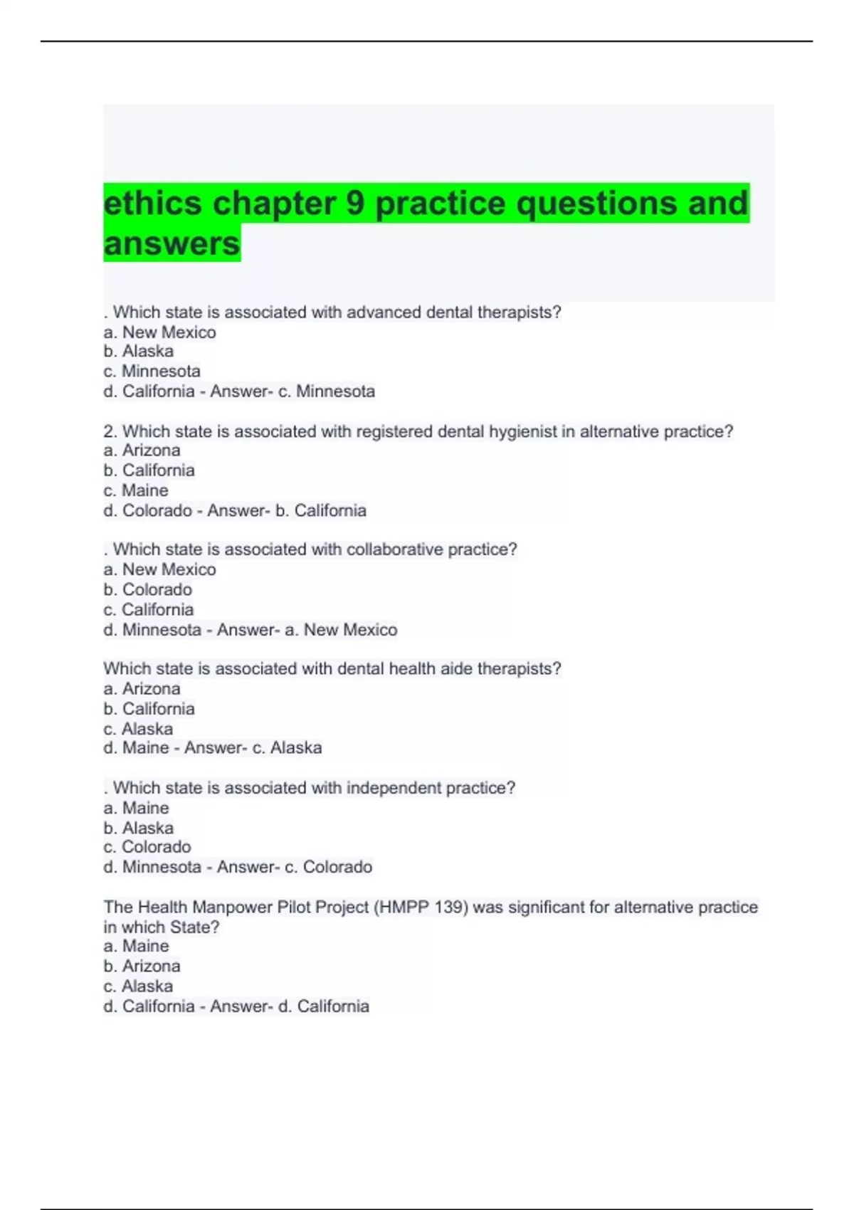 ethics chapter 9 practice questions and answers 2024
