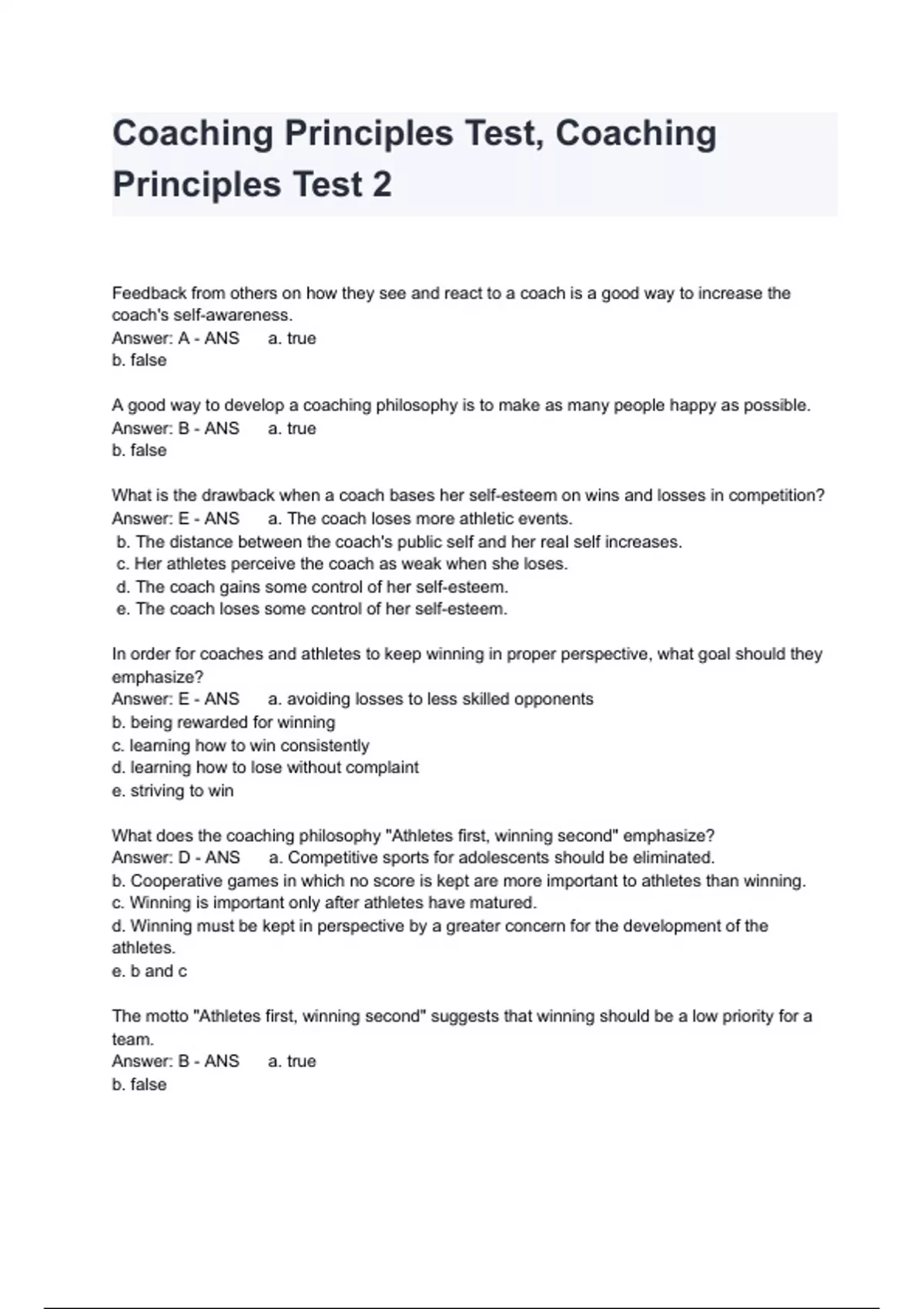 Coaching Principles Test, Coaching Principles Test 2 Questions And Answers