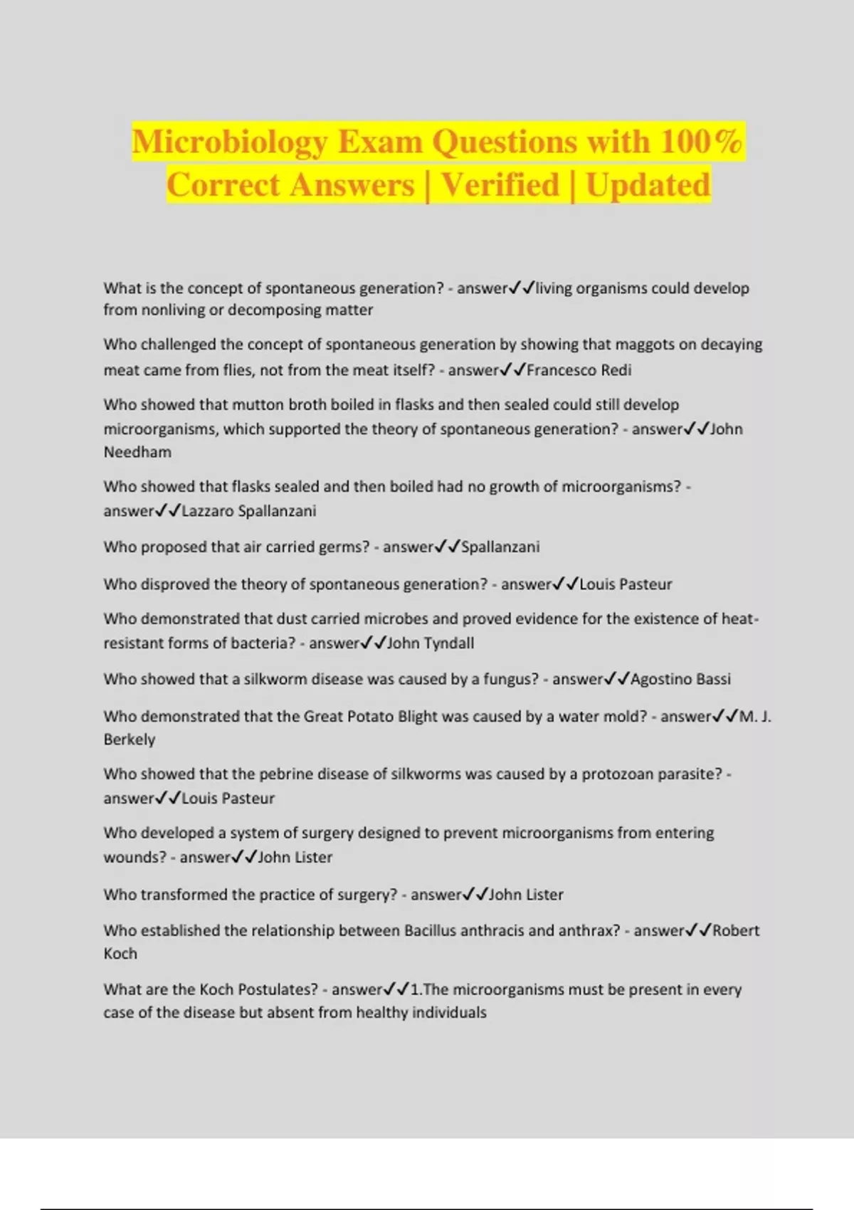 Microbiology Exam Questions with 100% Correct Answers | Verified | Updated