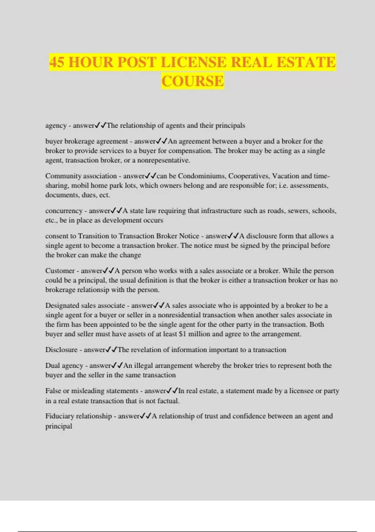 45 HOUR POST LICENSE REAL ESTATE COURSE