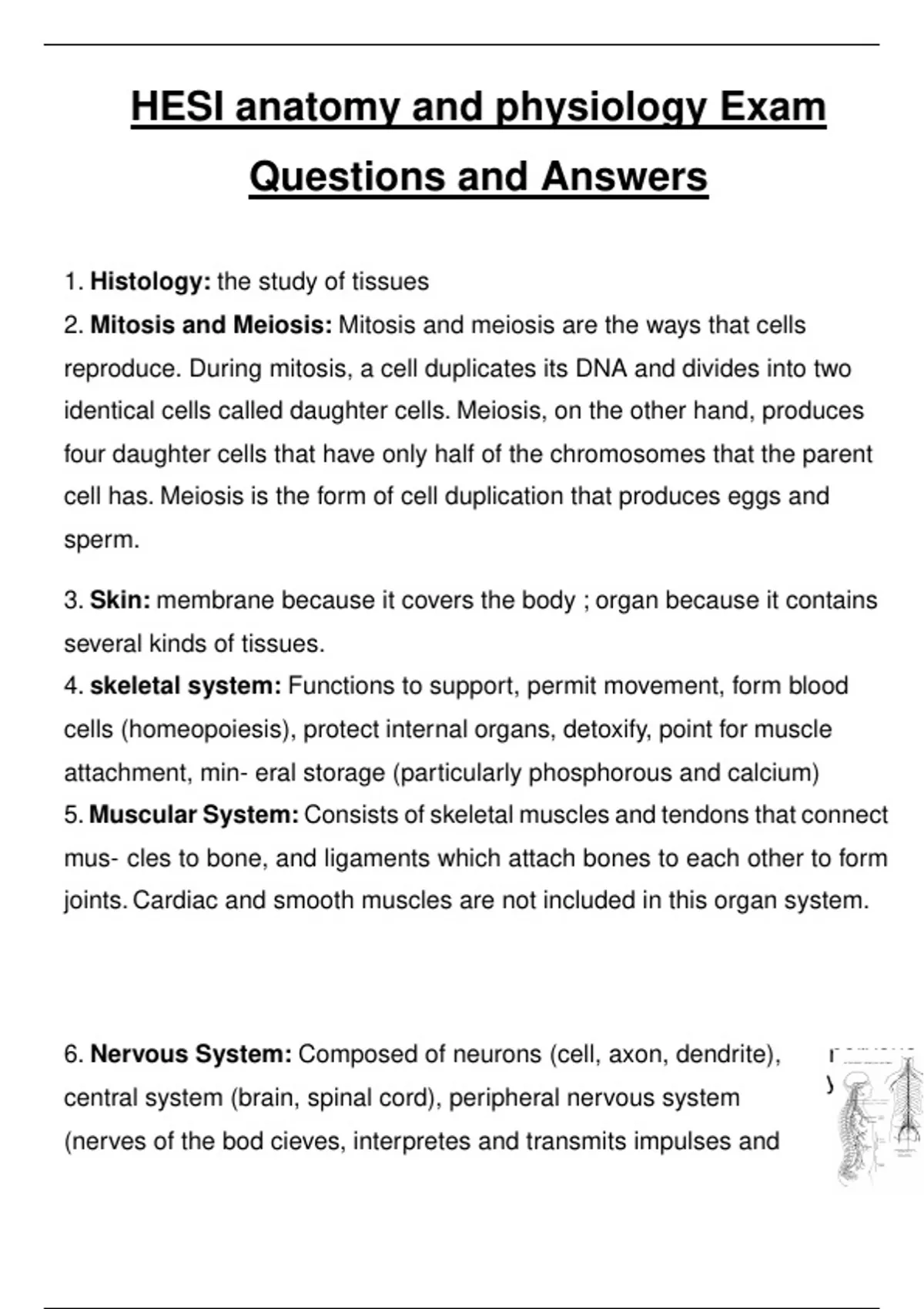 HESI anatomy and physiology 2024 Exam Questions and Answers