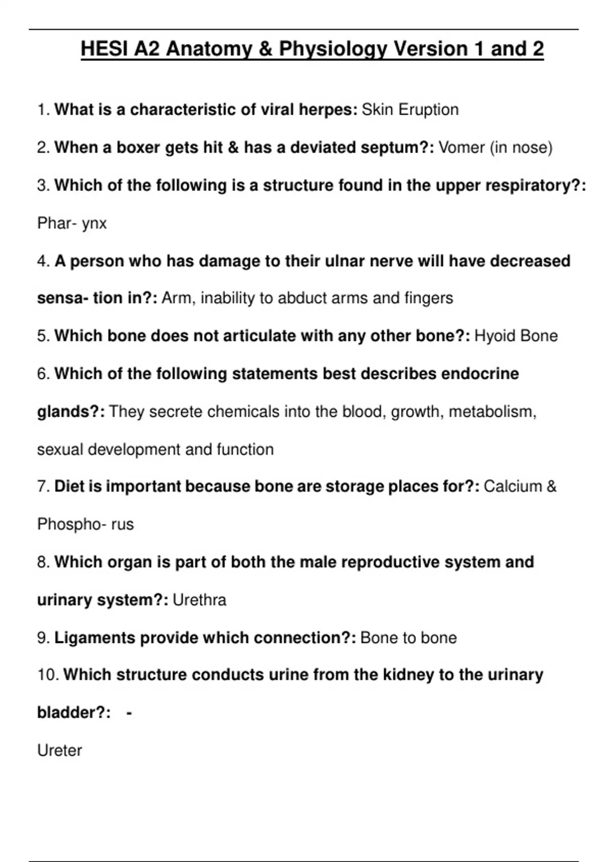 HESI A2 Anatomy & Physiology Version 1 and 2 Real 2024 Exam