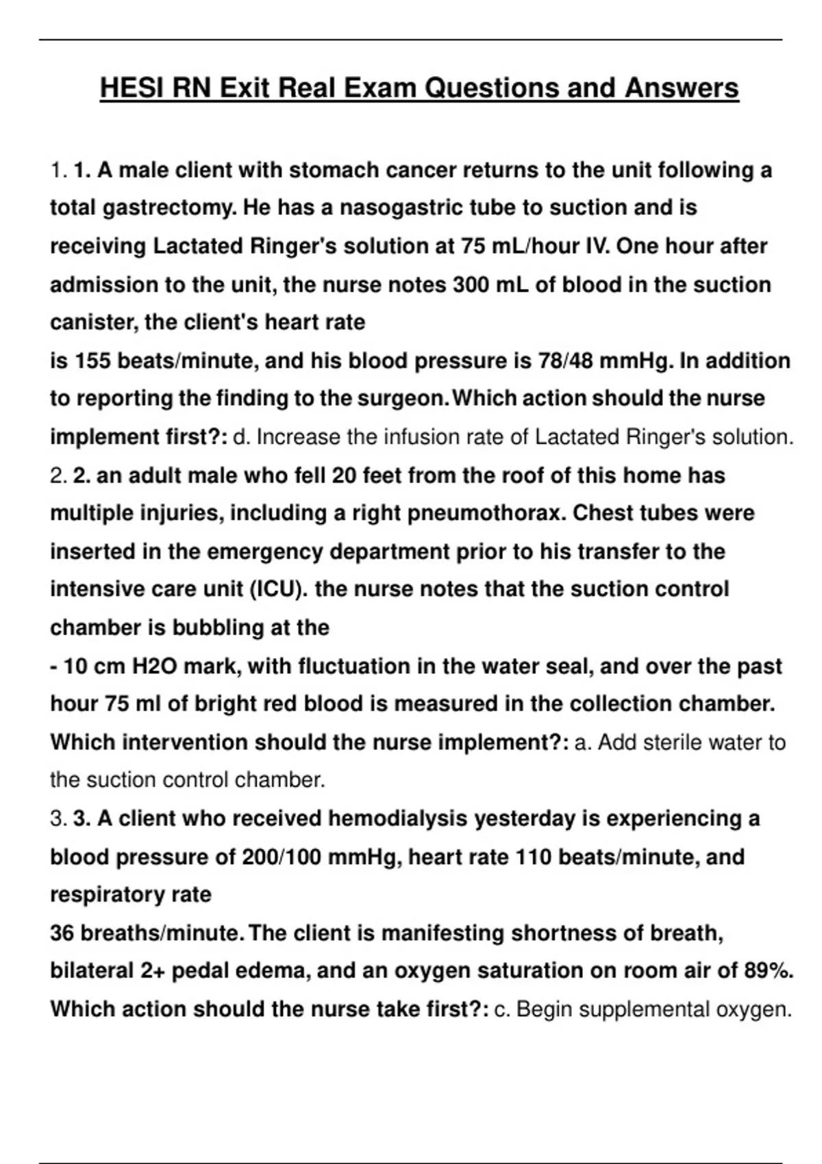 hesi rn exit real 2024 exam questions and answers