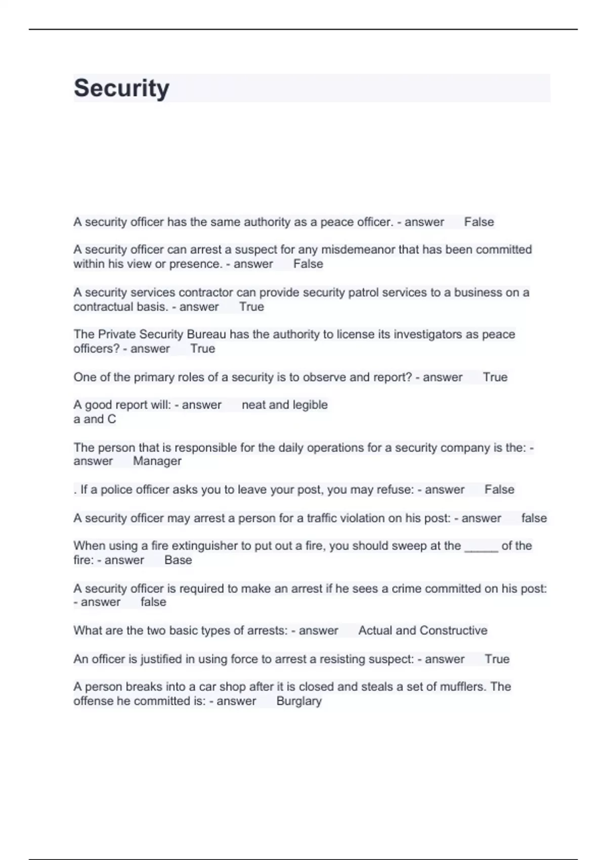 Exam of 4 pages for the course Texas level Security Guard at Texas level Security Guard (Security)