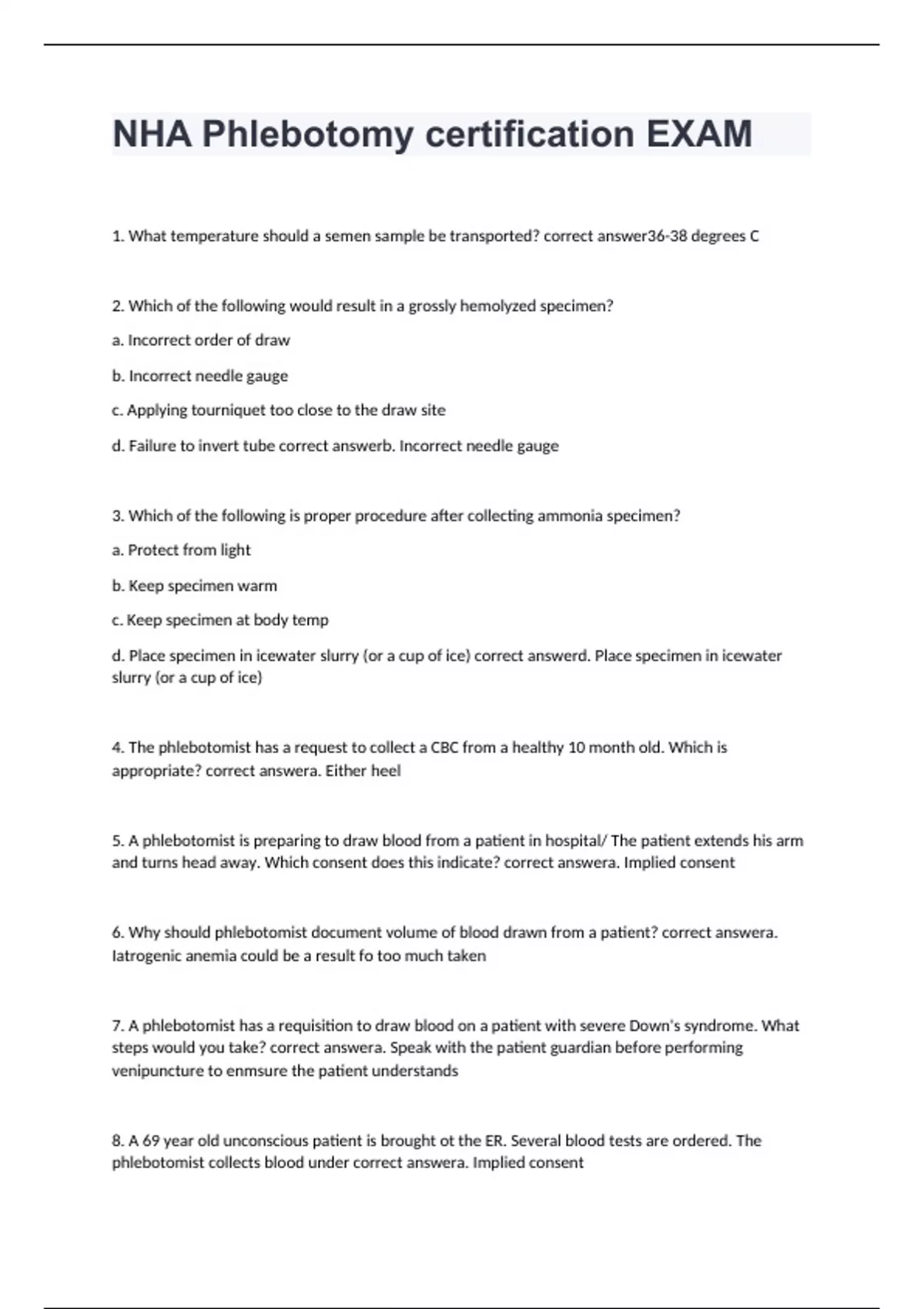 6. Why should phlebotomist document volume of blood drawn from a patient? correct answera.
