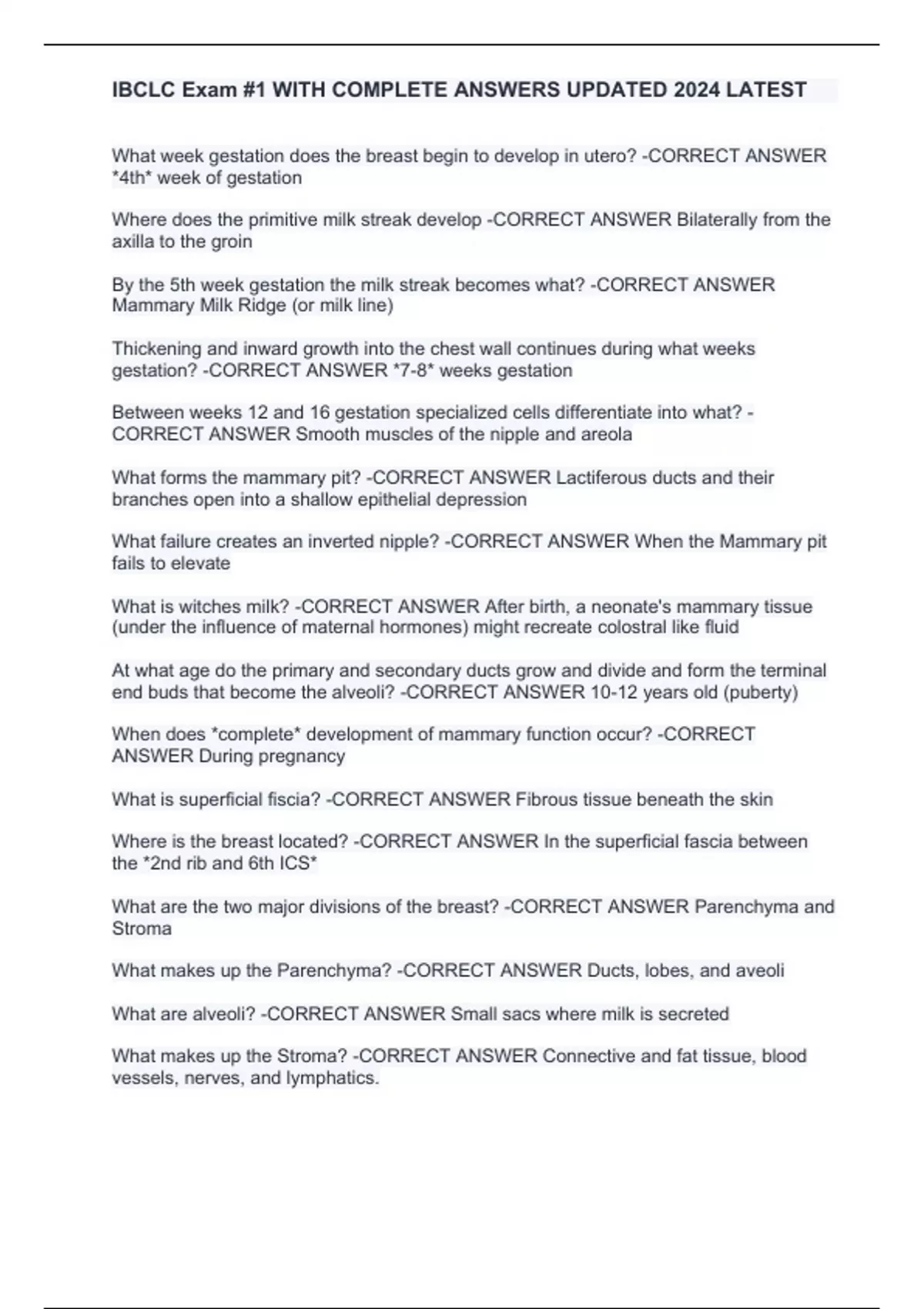 IBCLC Exam #1 WITH COMPLETE ANSWERS UPDATED 2024 LATEST
