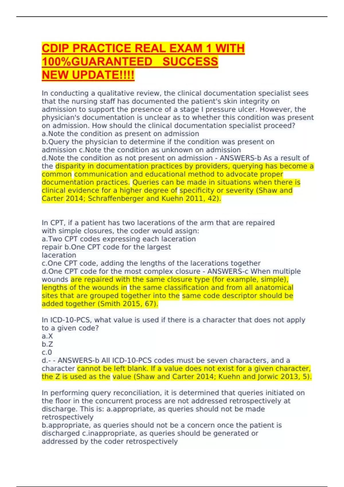 Summary CDIP PRACTICE REAL EXAM 1 WITH 100%GUARANTEED SUCCESS NEW UPDATE!!!!