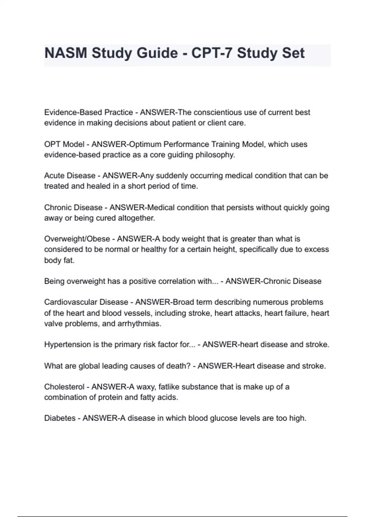 NASM Study Guide - CPT-7 Study Set with complete solution