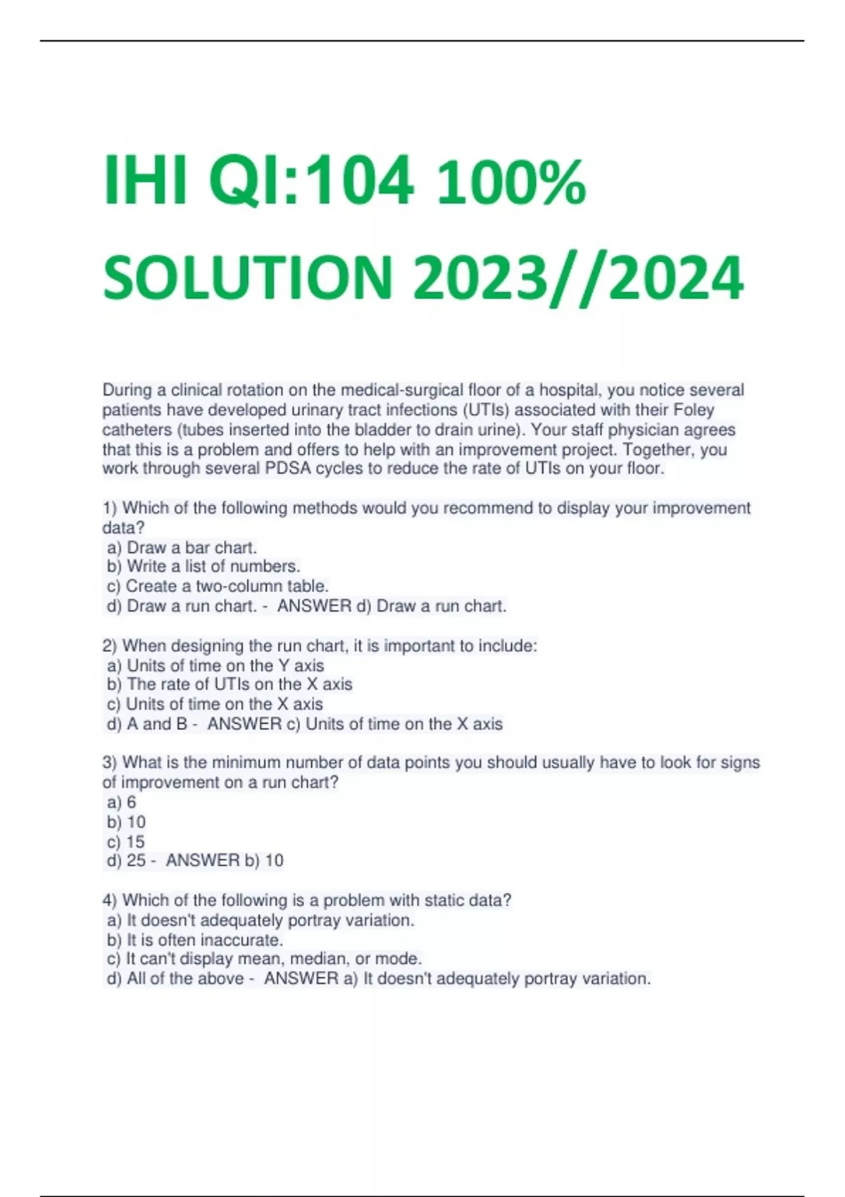 UPDATED IHI QI:104 100% SOLUTION 2023//2024