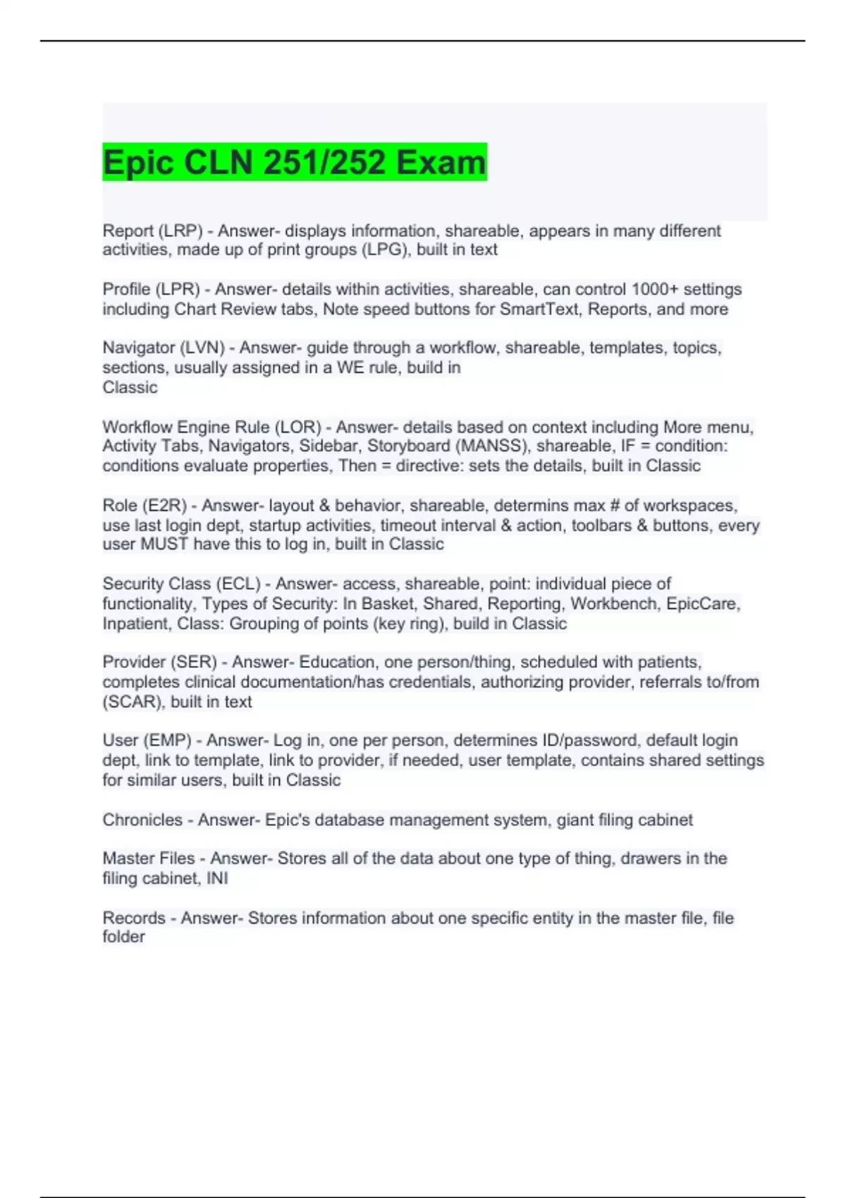 Epic CLN 251-252 Exam