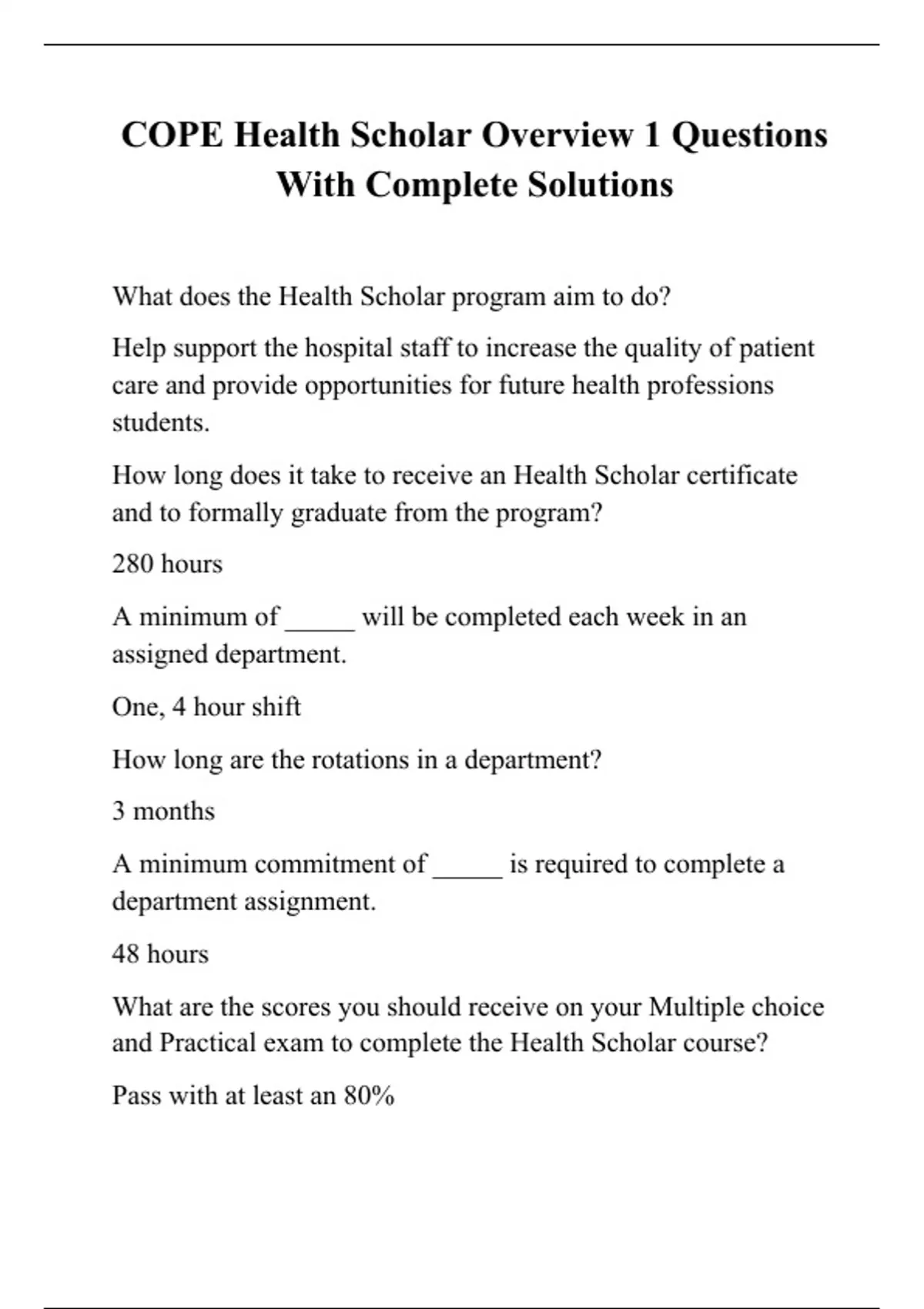COPE Health Scholar Overview 1 Questions With Complete Solutions