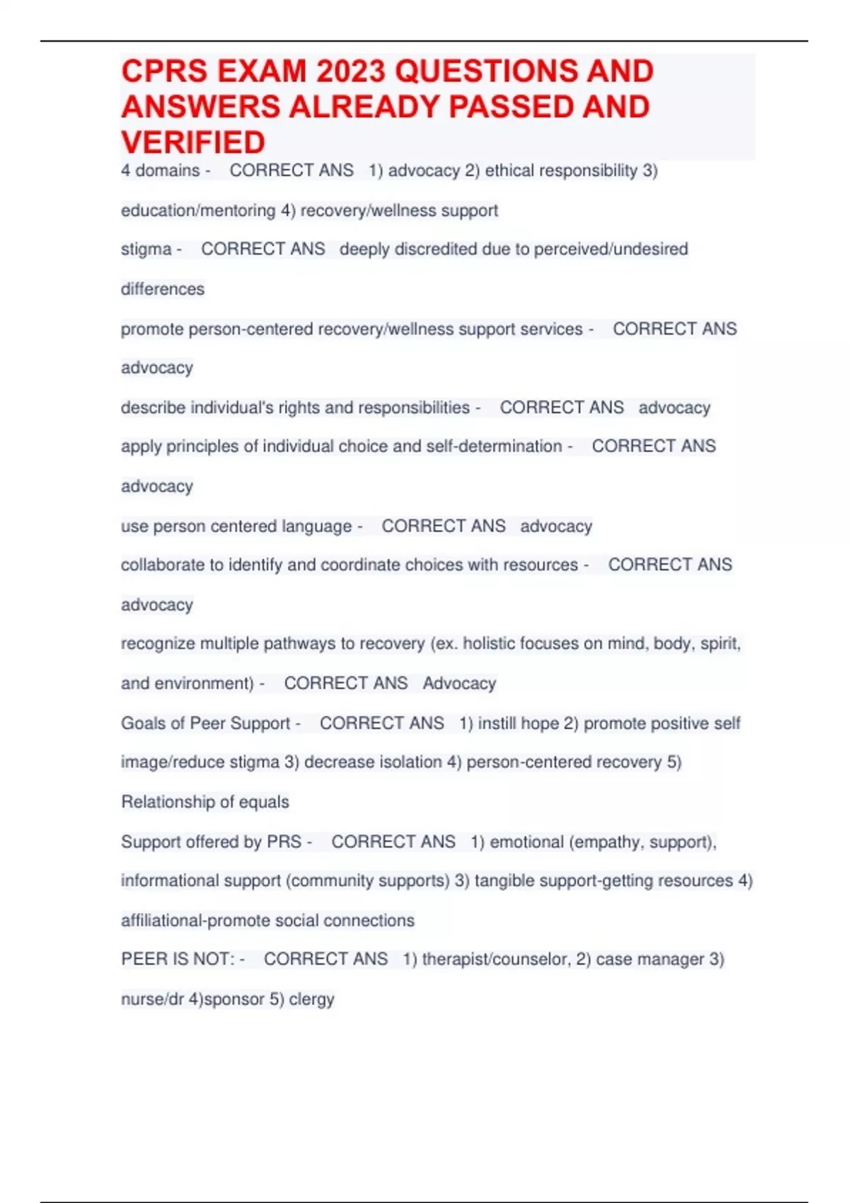CPR EXAM 2023 QUESTIONS AND ANSWERS ALREADY PASSED AND VERIFIED