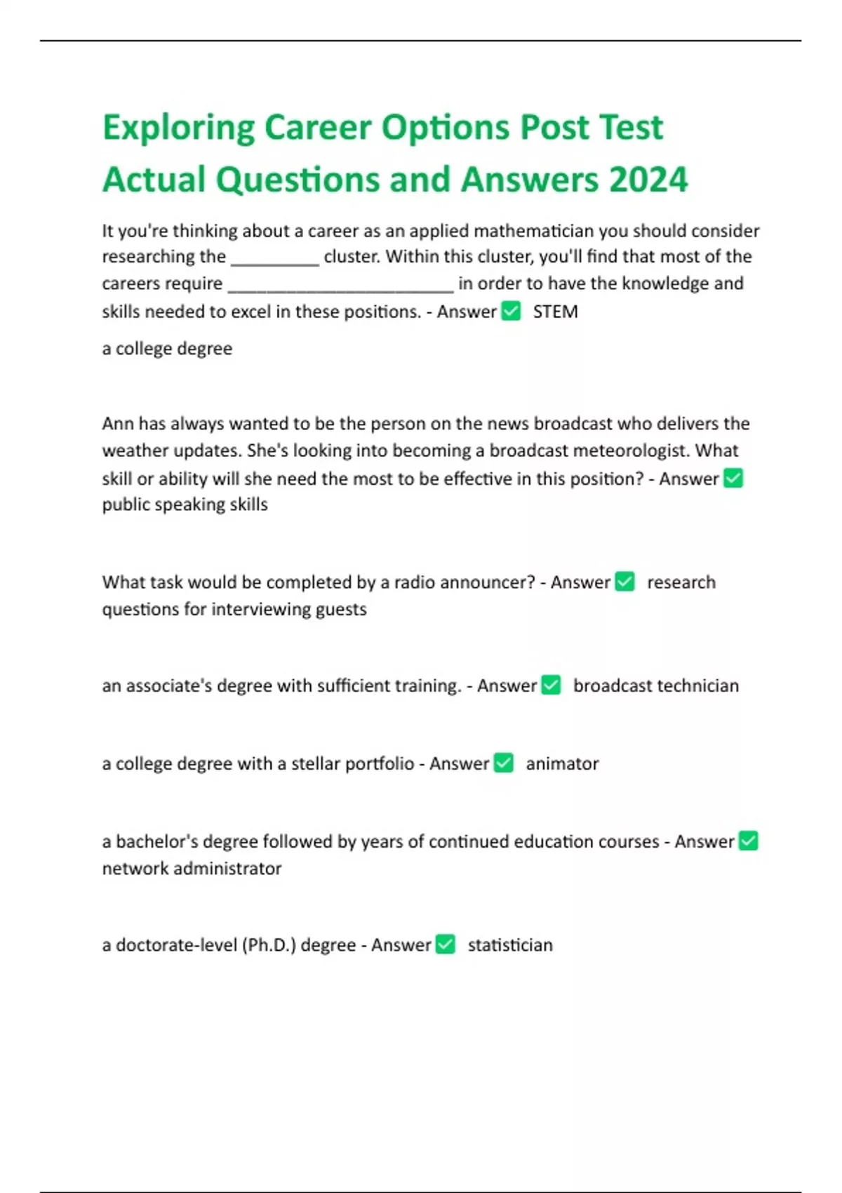 Exploring Career Options Post Test Actual Questions and Answers 2024