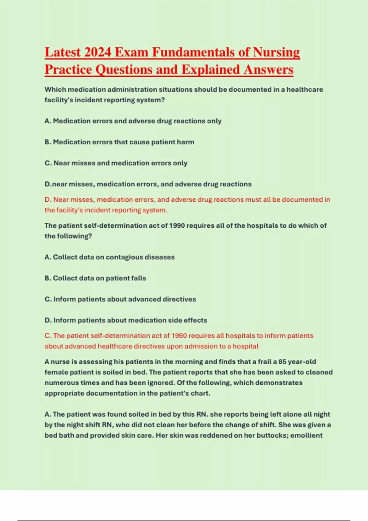 Latest 2024 Exam Fundamentals of Nursing Practice Questions and Explained Answers