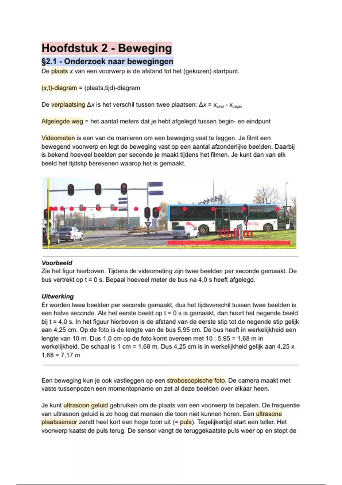 bij t = 4,0 s. In het figuur hierboven is de afstand van de eerste stip tot de negende stip gelijk