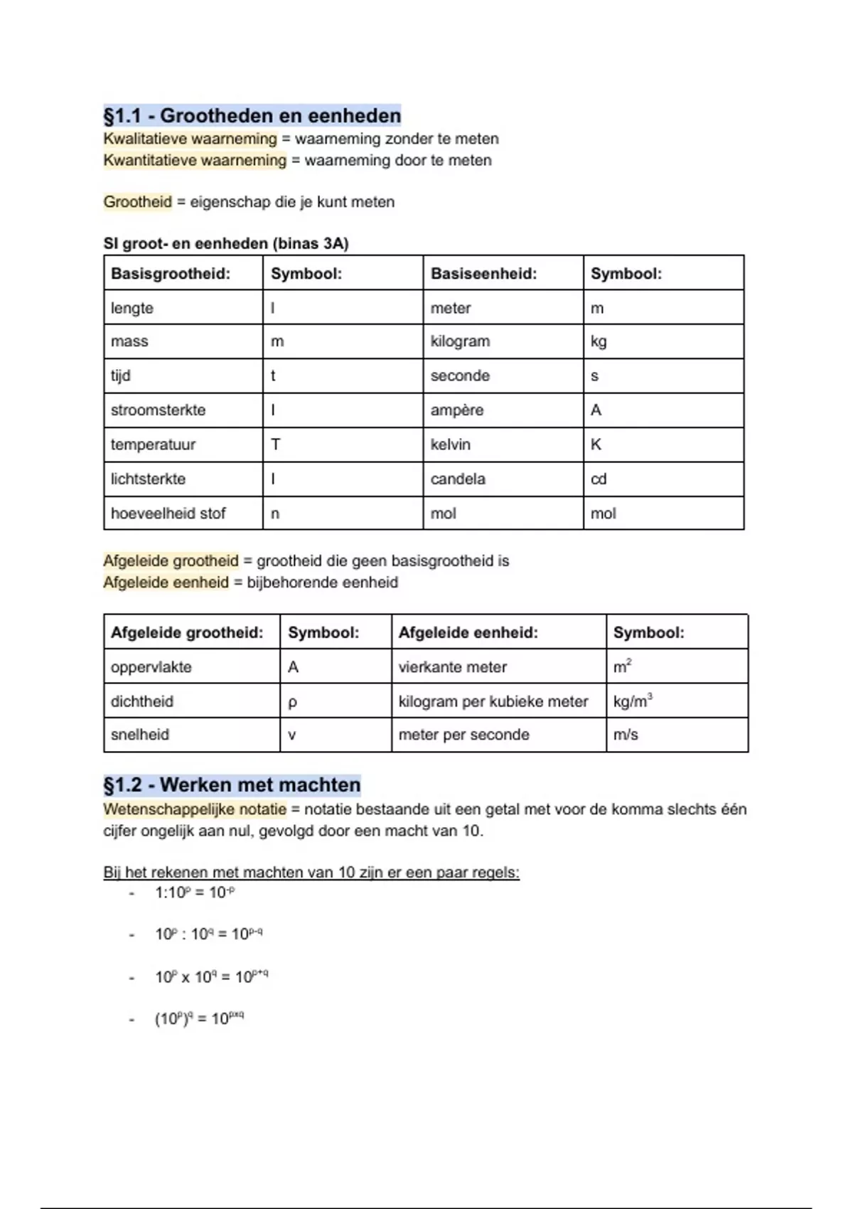 §1.1 - Grootheden en eenheden