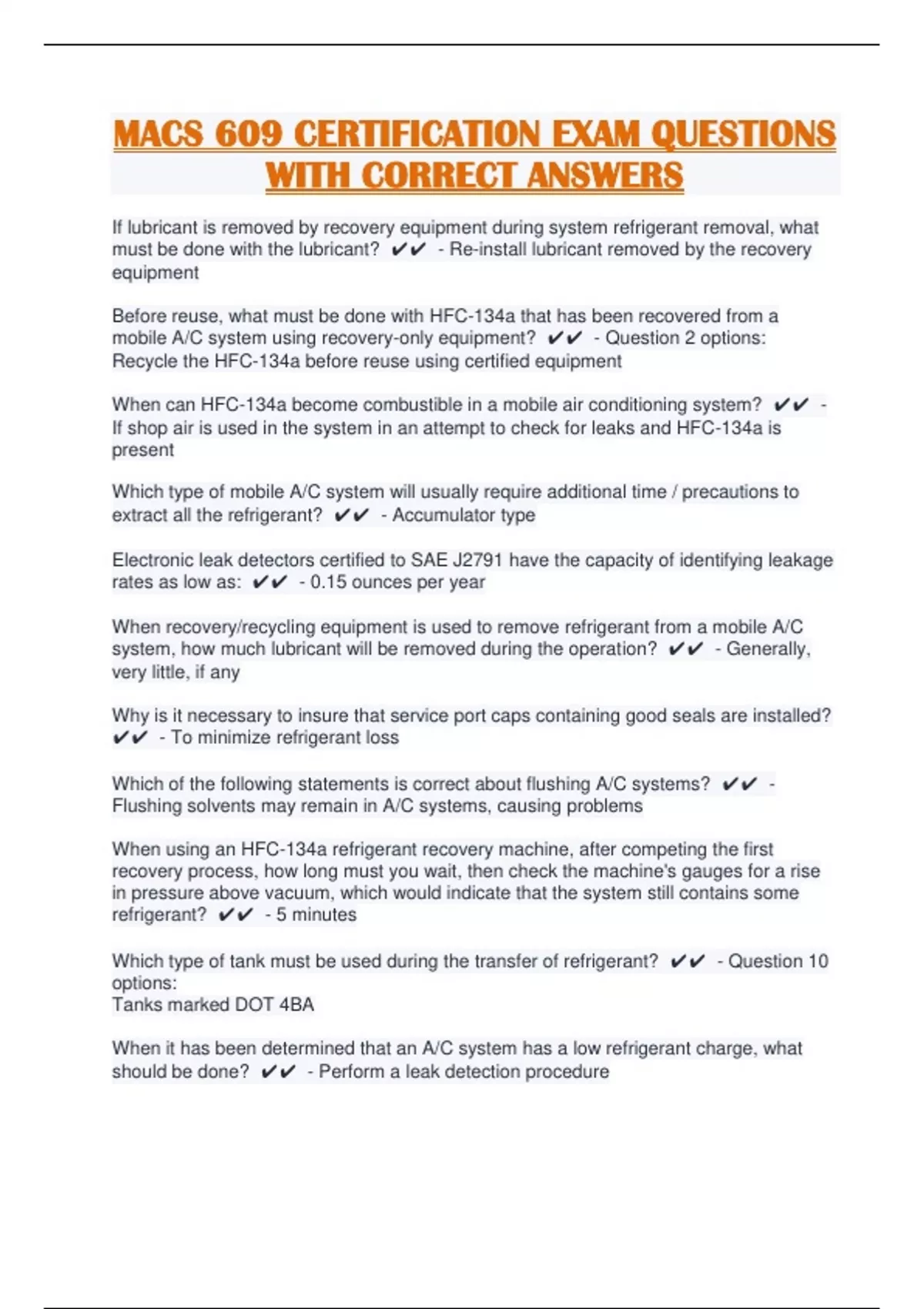MACS 609 CERTIFICATION EXAM QUESTIONS WITH CORRECT ANSWERS