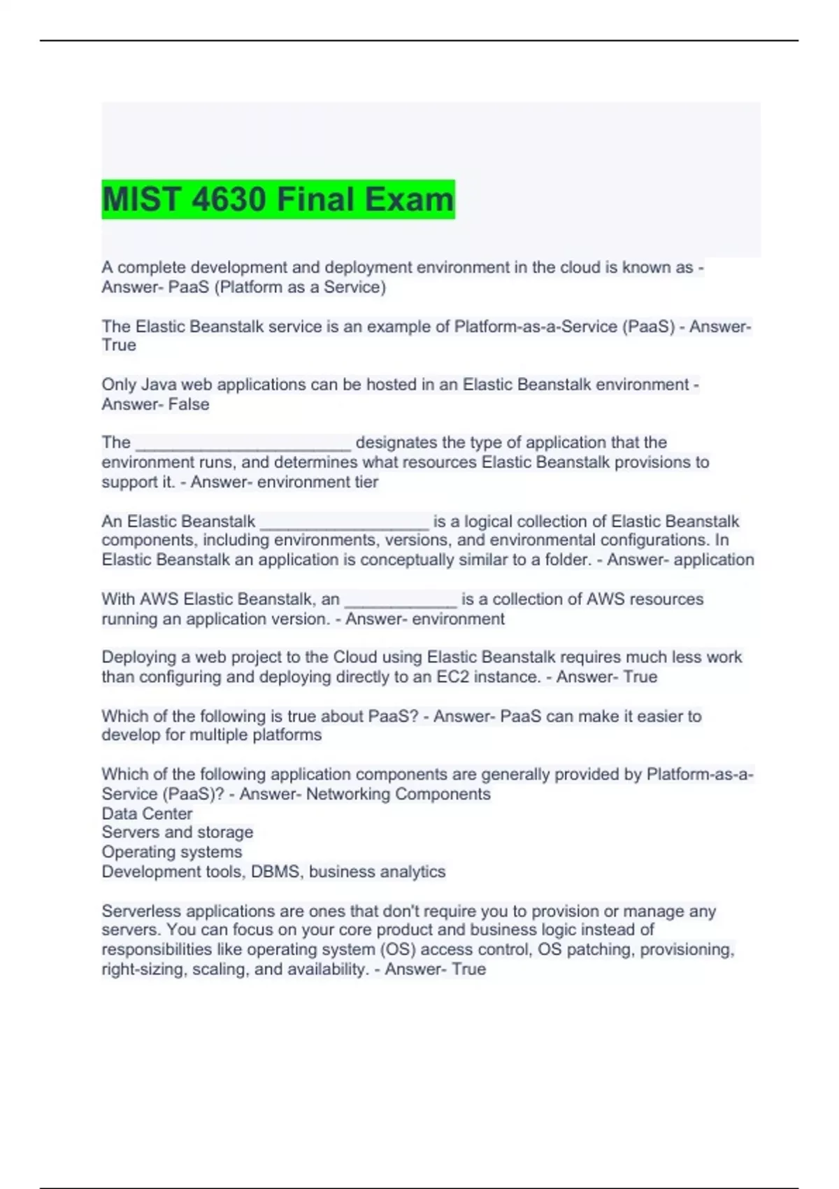 MIST 4630 Final Exam with correct Answers