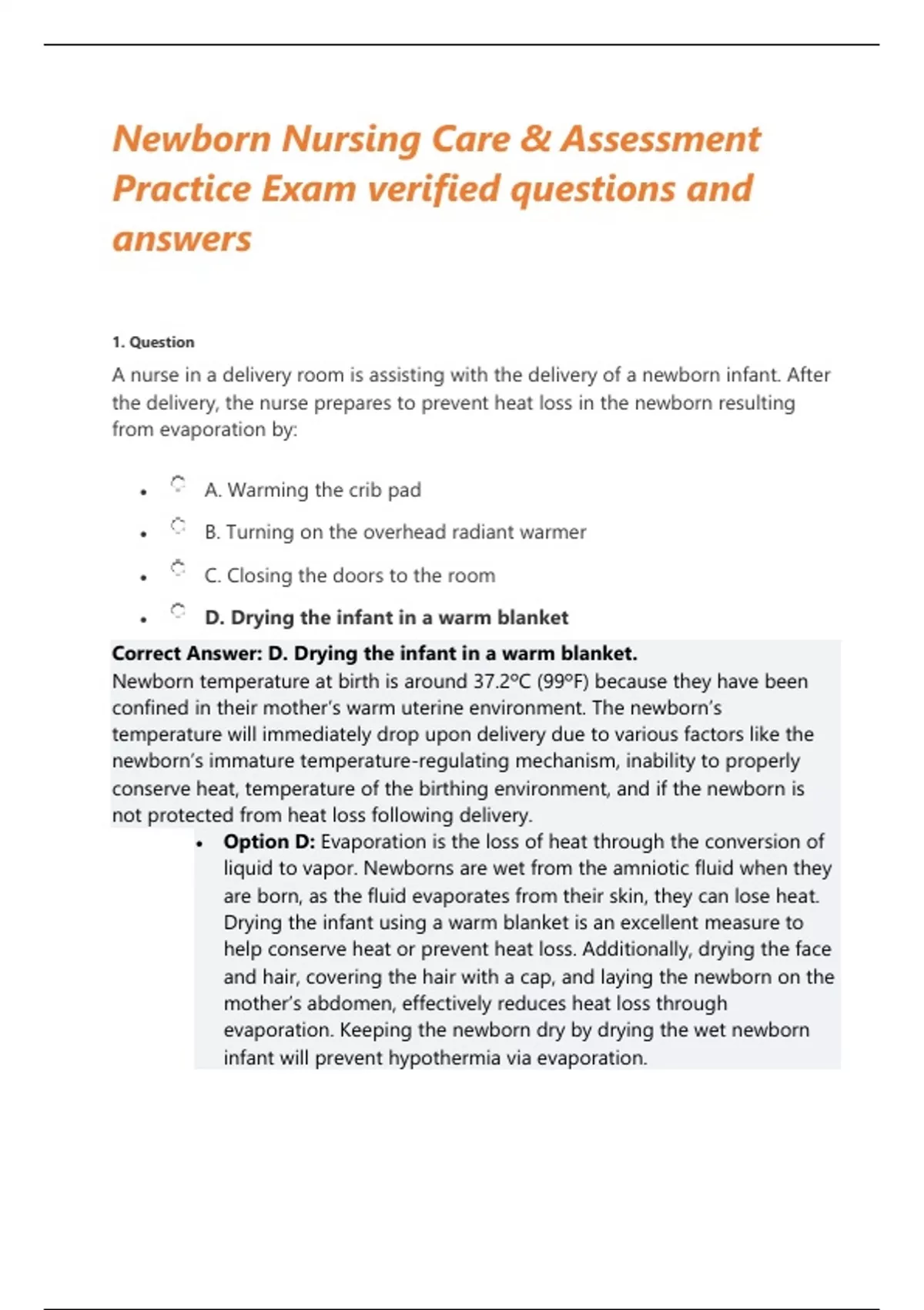 Newborn Nursing Care & Assessment Practice Exam