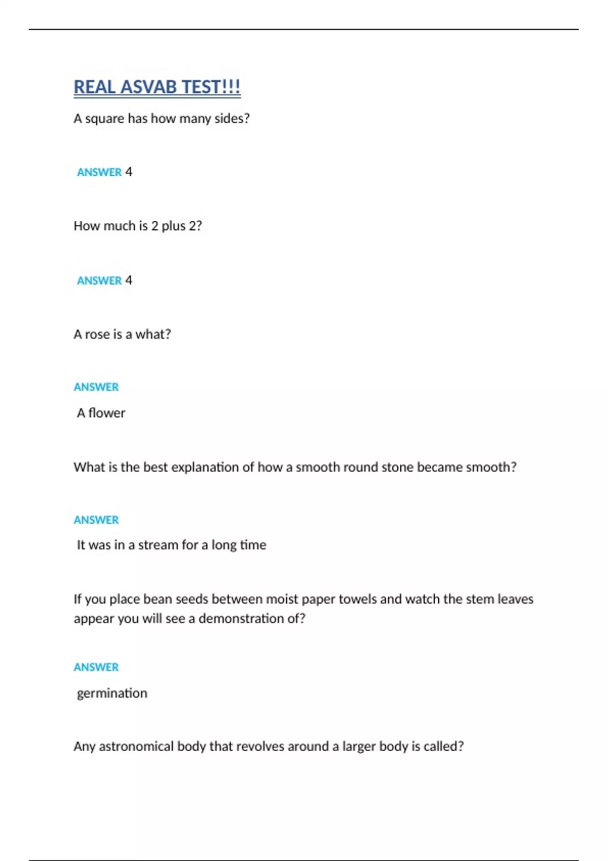 Real asvab test!!! 2024 UPDATED COMPLETE SOLUTION ( A+ GRADED 100% VERIFIED)