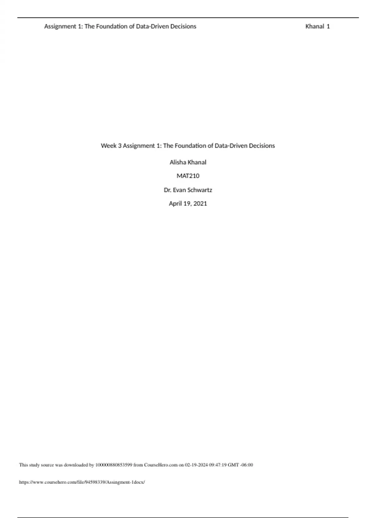 MAT 210 Assingment 1 QUESTIONS AND CORRECT DETAILED ANSWERS WITH RATIONALES VERIFIED ANSWERS ALREADY GRADED A+.
